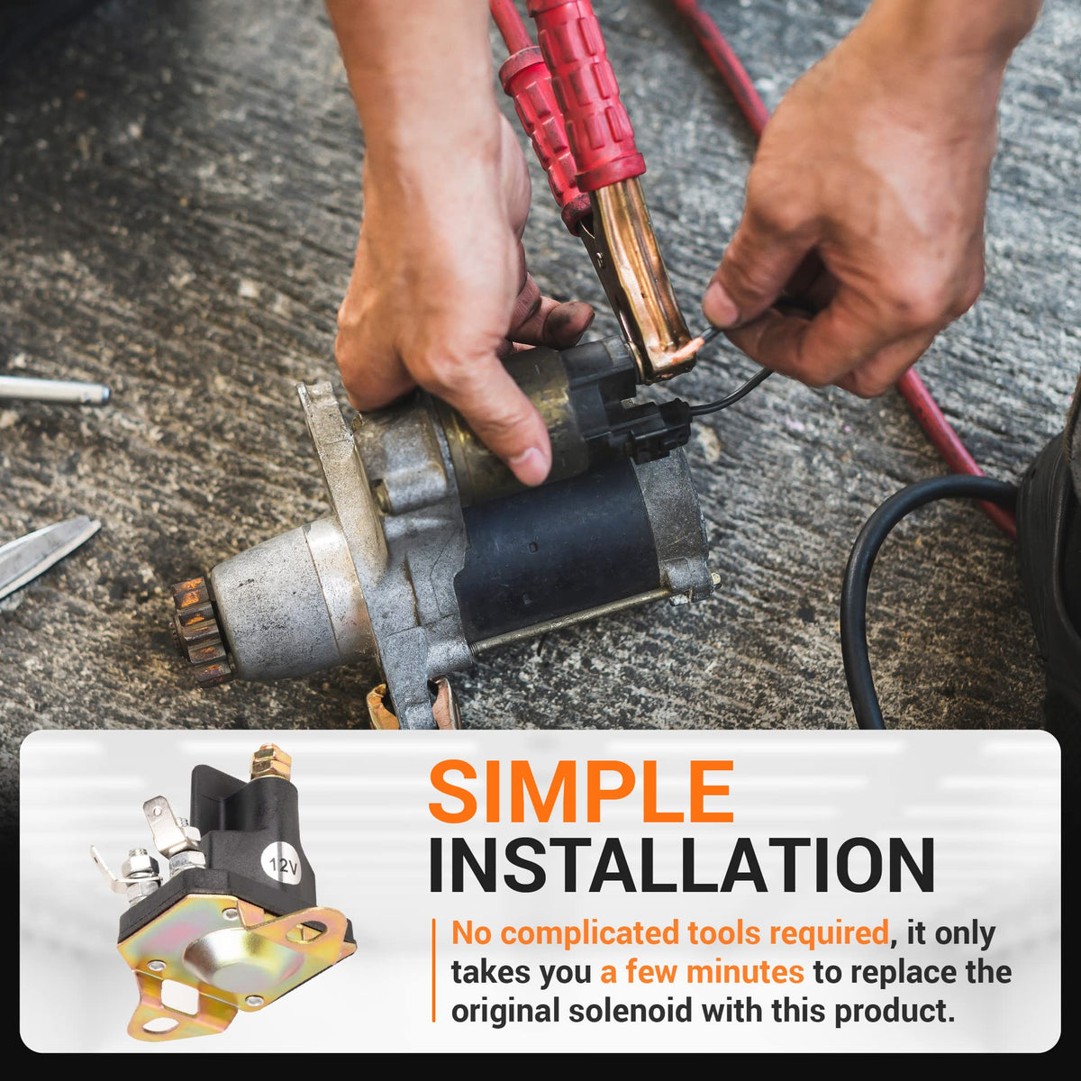 Q: What makes the BlueStars MIU12537 Starter Solenoid durable for lawn and garden machines?A: The BlueStars MIU12537 Starter Solenoid is designed to withstand harsh environmental conditions. It features high-quality materials, including copper windings and contacts, which ensure reliable operation even in extreme temperatures and humid or dusty environments.