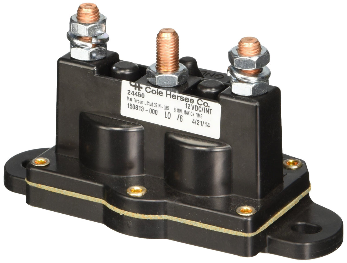 Q: What is the Cole Hersee 24450 solenoid used for?A: The Cole Hersee 24450 12V Motor Reversing Intermittent Duty DPDT Solenoid is designed for use in commercial vehicles and heavy-duty applications. It functions to control the direction of motors, allowing for reversing motion in various vehicle systems.