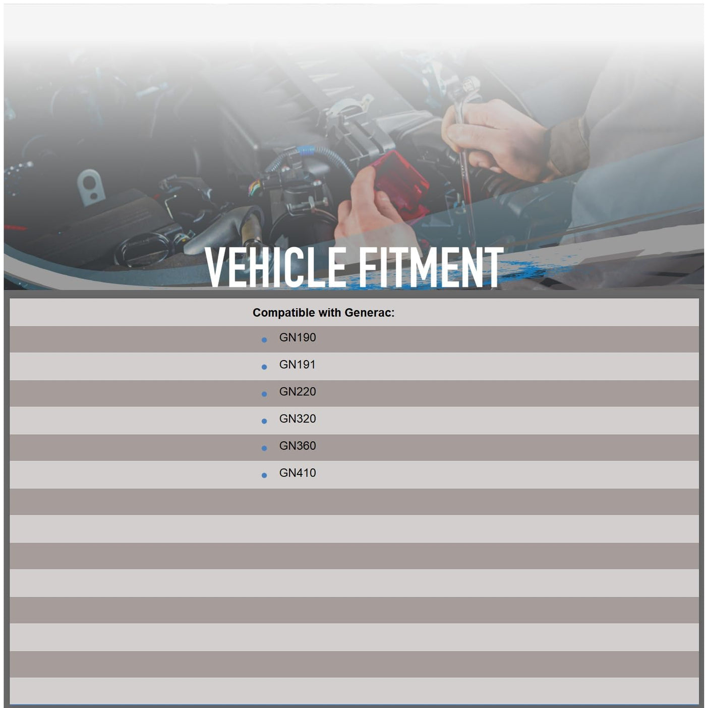 SPECIFICATIONS: 12 Volt, CCW, 10-Tooth Pinion DESIGN: PMDD VOLTAGE: 12 ROTATION: CCW NUMBER OF TEETH: 10 NOTE 1: Includes bolts and shim kit. REPLACEMENT FOR or COMPATIBLE WITH GENERAC: GN410 multiple years GN360 multiple years GN320 multiple years GN220 multiple years GN191 multiple years GN190 multiple years