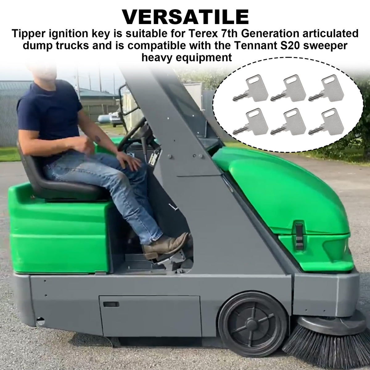 ?Versatile?Tipper ignition key is suitable for Terex 7th Generation articulated dump trucks and is compatible with the Tennant S20 sweeper heavy equipment ?Product material?Truck ignition key is made of metal material with silver surface treatment. ?Product size? The size of the truck start key is: 0.08 x 1.8 x 1.38 inch. Manual measurement, please allow for slight errors. ?Note?: Part Number: 361144 14644 M516 15271326; Buying the right key is not an easy task, and before buying a key replacement for any item, check that the key size meets your requirements. ?Opinion?If you purchased the product from us and found that it does not match after use, you can return it at any time. If you have any questions or suggestions, please feel free to contact us and we will reply within 24 hours.