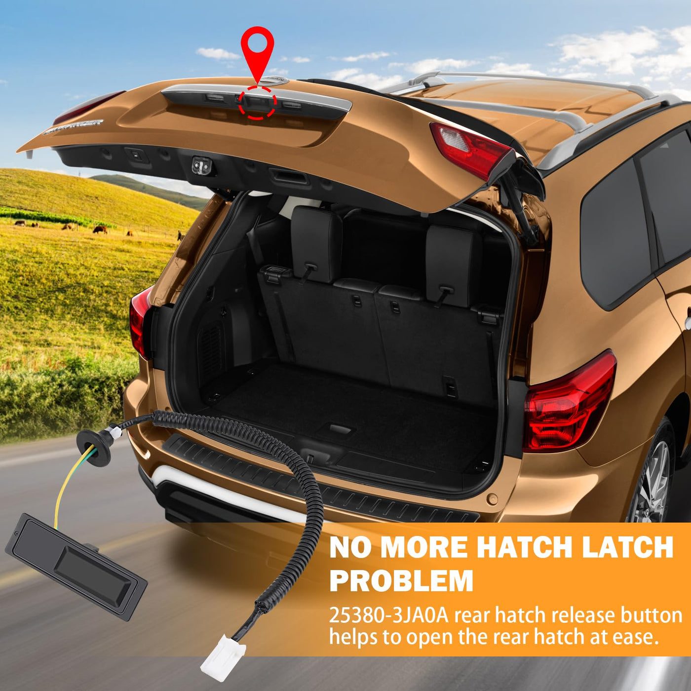 25380-3Ja0B Hatch Button Trunk Latch For Nissan Pathfinder 2013 2014 2015 2016 2017 2018 2019 2020, Replace Part # 253803Ja0B Re