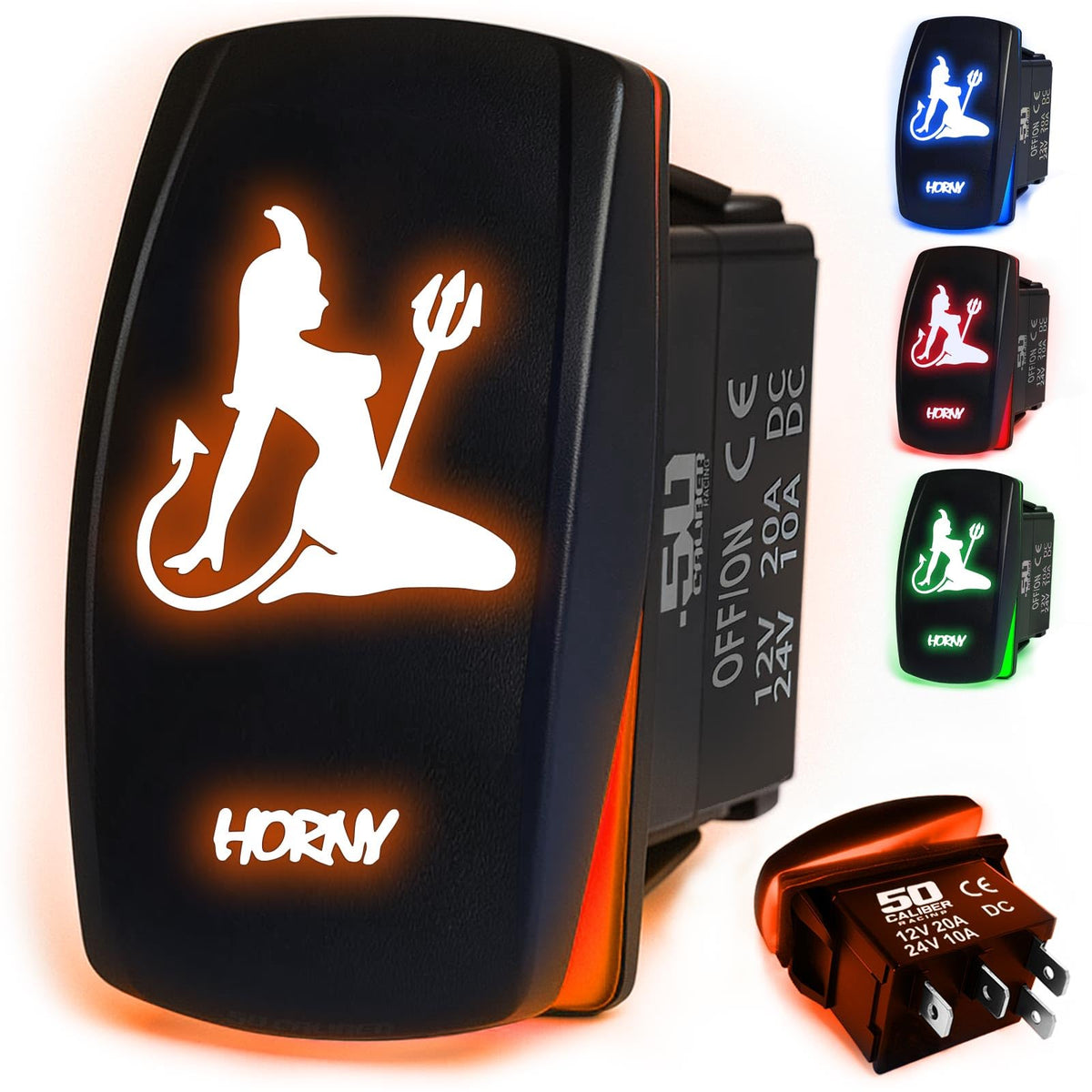 50 Caliber Racing Rocker Switch Momentary/Off Led Backlit -Horny- Utv, Auto, Boat 20A 12V (Orange)