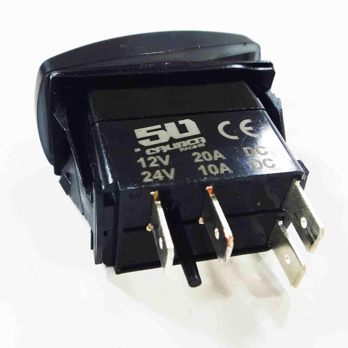 50 Caliber Racing Illuminated On/Off Rocker Switch with laser etched design - ''Necessities''* Green, Blue, red, and Orange Available *High quality 50 Caliber Racing LED ON/OFF rocker switch with a custom laser etched design rated for 12 Volts and 20 Amps. Two waterproof LED lights to illuminate the custom design. Rear facing spade terminals for easy wiring. Made from high impact black ABS plastic, these durable switches are perfect for your boat, car, truck, sand rail or UTV! Waterproof power switch for all your Off Road, Boating, Automotive, Racing, RV and Farm Equipment accessories:ps, P, Cameras*Universal size - dash modifications may be necessary to fitDetails:- Single Pole, Single Throw On/Off Rocker Switch- 12 Volt, 20 Amp rating- IP66 Waterproof rating- Durable ABS construction- Laser etched design- Dual LED illumination- Standard size mounting hole: 1.41'' x .86''