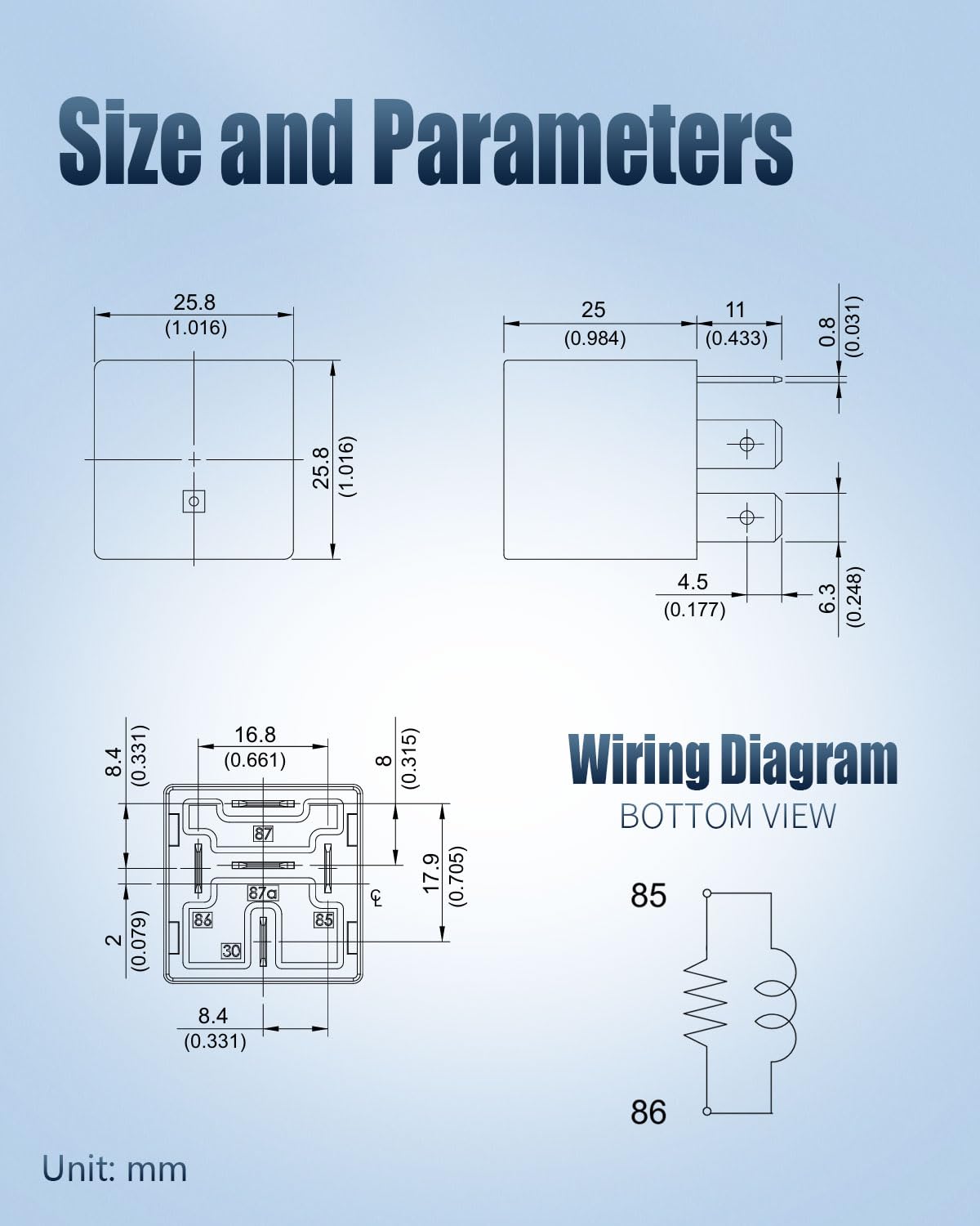 'Nominal Coil Voltage: 12 VDC Contact Form: SPDT Contact material: AgSnO alloy Contact voltage drop:Typ. 50mV at 10A Operate time : 20ms Max. Release time : 20ms Max. Insulation resistance:20MO Min. (DC 500V) Contact RatingNO : 50A Operating ambient temperature:-40~+125C (no freezing) Weight: Approx.25 g Package Content: 1 x896H-1CH-C-R1 U24 12VDC Attention: Do not switch the contacts without any load as the contact resistance may become increased rapidly. To assure optimum performance, avoid the relay from dropping, hitting, or other unnecessary shocks. ''