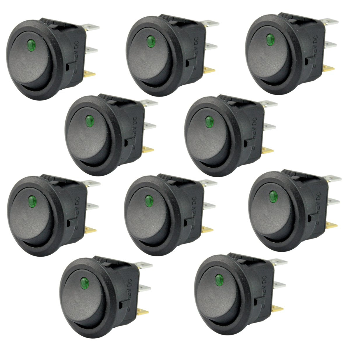 Autoec 10Pcs New 16A 12V Round Rocker Toggle Switch Green Led Spst For All