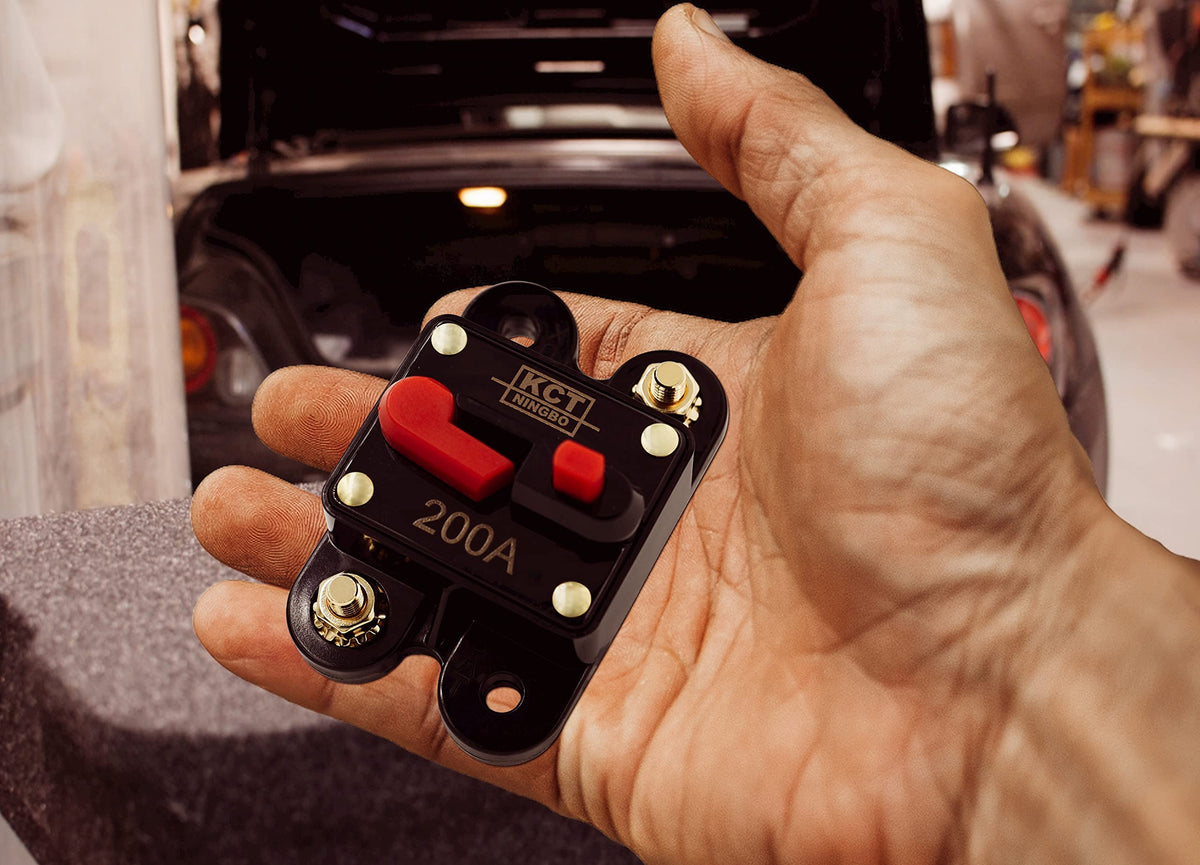 High Current Circuit Breaker Size: 80Mm (L) X 52Mm (W) X 40Mm (H) Works With 12-24V Dc Stops Power Surges From Damaging Your Amps Mount On Panel Or Firewall Unique Push Button Reset Can Also Be Used As A Kill Switch High Tech Water Resistant Housing Rubber Boots For Water Protection No More Spending Money On Replacing Fuses
