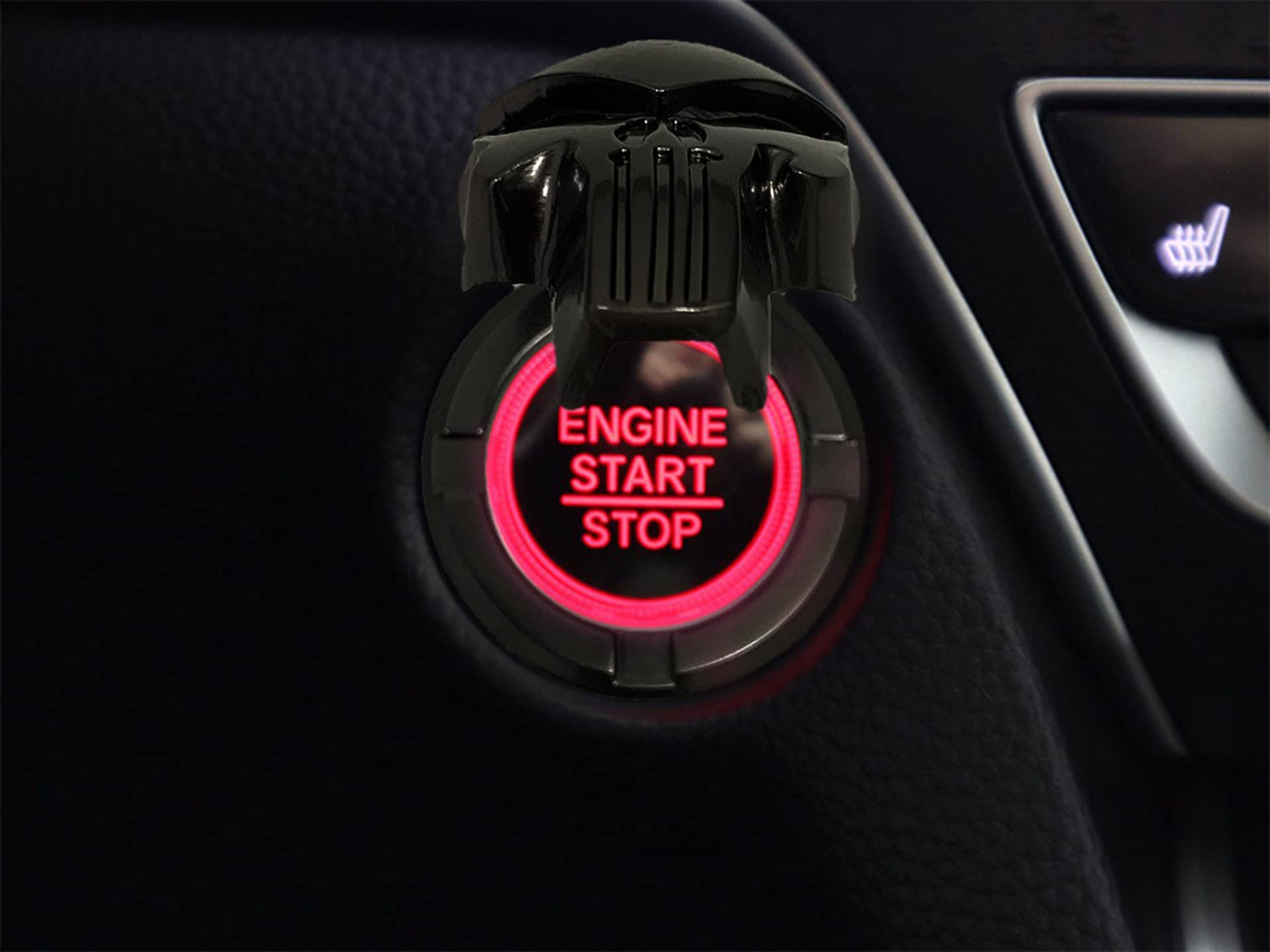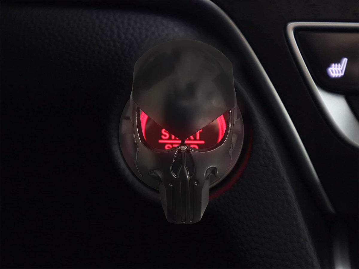 Name: The Punisher Car engine start button decorative cover Applicable to 99% of the world's models Feature: Improve the grade of interior decoration, beautiful atmosphere size:(NOTE: Please make sure the size of button cover fits your car first) - Product Size: 2*1.6*1.13 inches - Ring Size: 1.6*1.6*1.6 inches Material: Zinc alloy Package includes: 1x Car Start Button Protective Cover 2x Adhesive Rings Model: The Punisher - Can be opened and closed freely How to use car engine start button Cover? 1.Tear off the delivered glue and stick it on the bottom of the circle. 2.Tear off the adhesive after pasting. 3.Adjust the outer ring of the start button and paste it. 4.Installation is complete. Our decorative car cover is not only a perfect decoration for your car, but also can protect your one-key start button from scratches and prevent from accidentally-touching by your children.