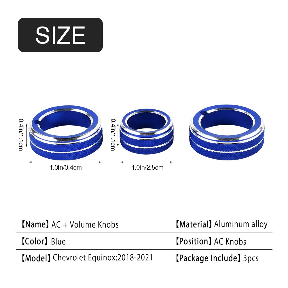 Carfib Volume Ac Knobs Decals For Chevrolet Chevy Equinox Lt Accessories Air Control Push Auto Sync Stickers Caps Covers Parts Car Interior Inside Decoration Men Women Aluminum Alloy Blue Pack Of 3