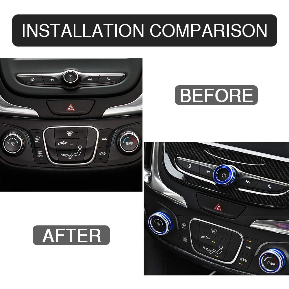 ?Please contact us to get support if you have any questions or concerns about our products. ?DETAL: ?Name:Chevrolet EQUINOX Volume & AC Knobs Caps. ?Color:Blue. ?Package: 3pcs Aluminum Alloy caps for the Volume and AC Knobs and 1pc additional adhesive for spare. ?Material:Aluminum alloy. ?Position:Chevrolet EQUINOX Volume and AC Knobs. ?Fitment:Chevrolet EQUINOX (2018-2021). ?INSTALLATION METHOD: ?Clean the Volume and AC Knobs with alcohol pads. ?Tear off the cover of the back adhesive, heat the adhesive and stick the caps on the Volume and AC Knobs and press over 10 seconds. ?Finish. ?NOTES: ?Actual color maybe different of the picture due to the shooting environment and angle.
