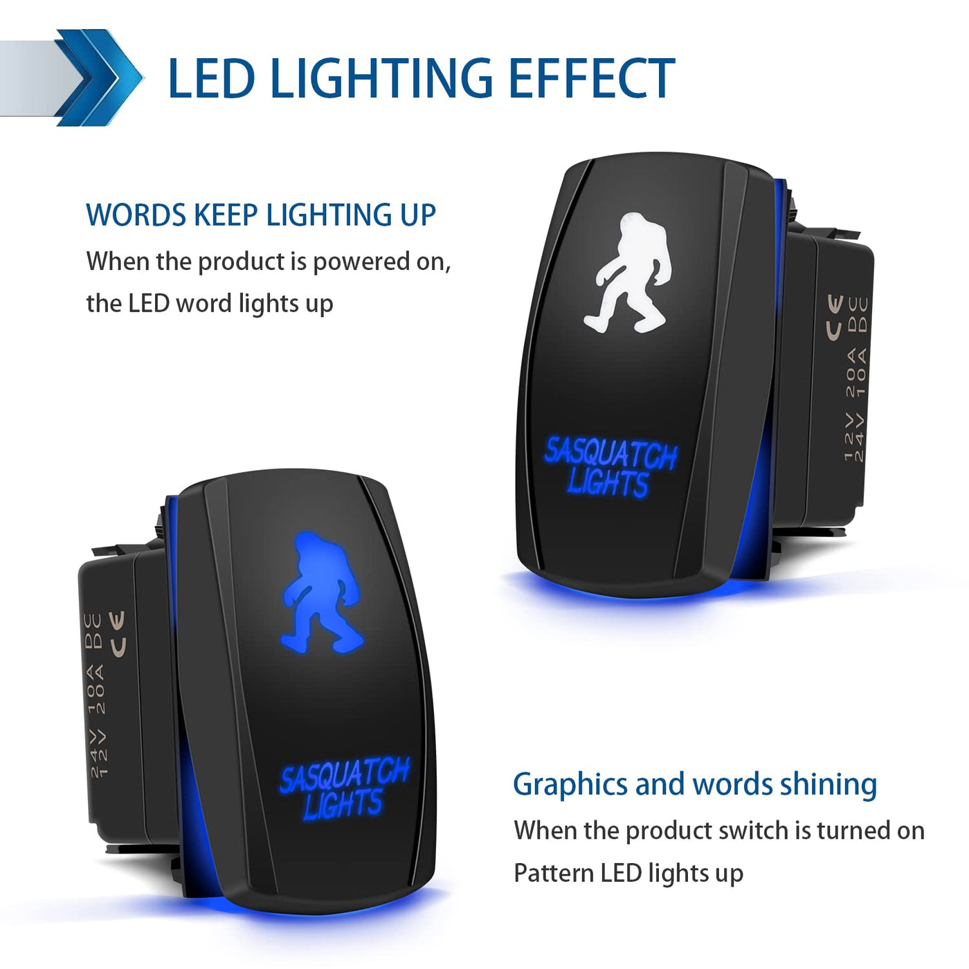 Fabood F Waterproof 5 Pin Sasquatch Lights Rocker Switch Laser Spst On/Off Two Led Backlit Blue Light 20A 12V For Automotive Mot