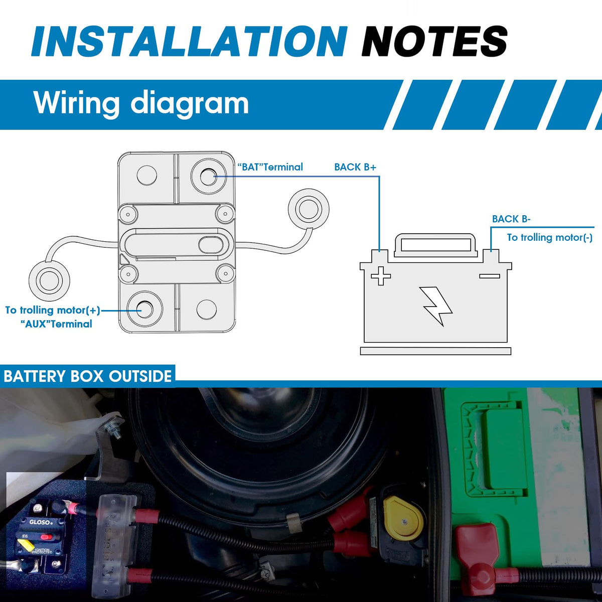 Q: What are the compliance standards for the GLOSO Circuit Breaker?A: The GLOSO Circuit Breaker complies with SAE J553 and SAE J1171 standards, ensuring it meets safety and performance requirements for ignition protection in marine and automotive applications.