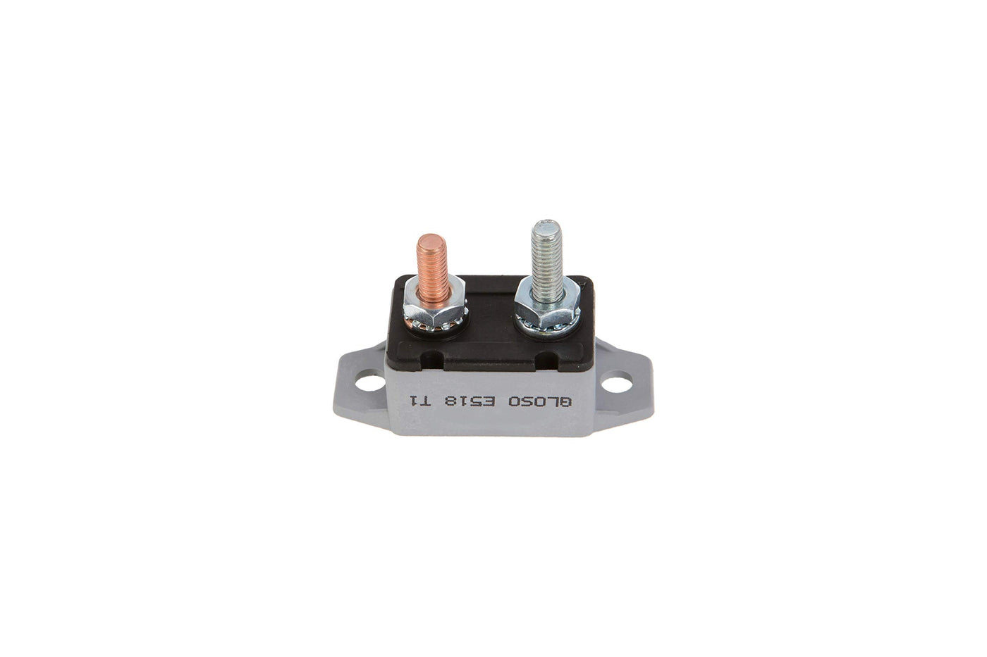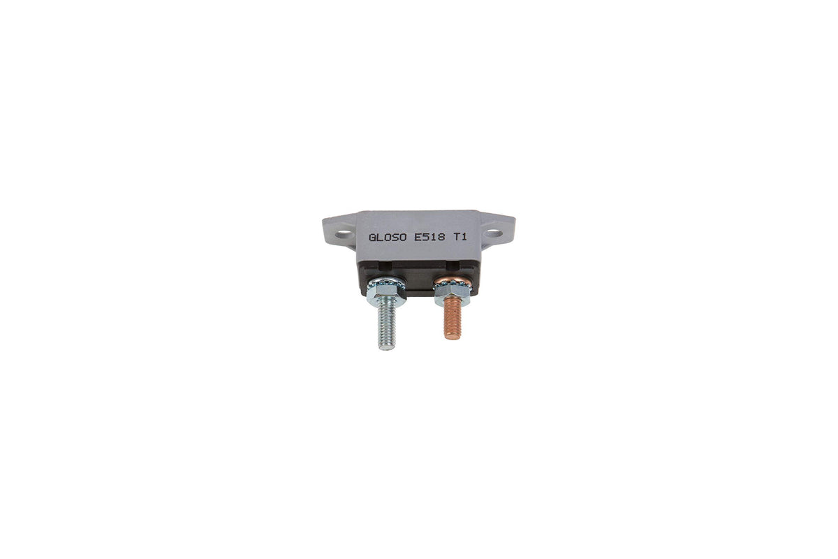 GLOSO E518 Stud Type Circuit Breakers: 25A @ 14Vdc - 1 Pack Reset Type: Type 1 Auto Reset Operating Temperature Rating: -40F (-40C) to 185F (85C) Storage Temperature Rating: -40F (-40C) to 260F (125C) Marking: Standard marking includes Amp Rating and date code Termination: Two #10-32 tread studs; 0.66'' (AUX) x 0.56'' (BAT) Compliances: SAE J553; SAE J1171 (Ignition Protected)