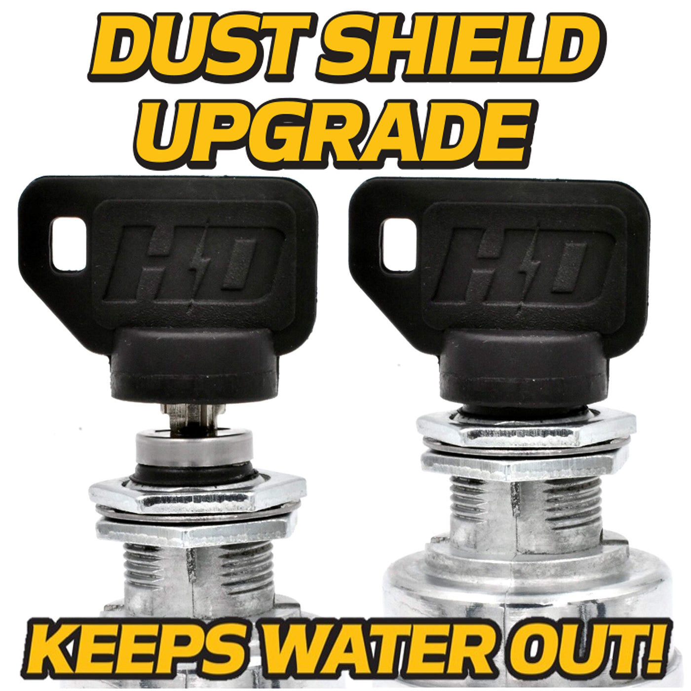 Q: What materials are used in the HD Ignition Key and switch?A: The ignition switch features a robust design with a rubber material for the keys that provides a soft-grip and protective barrier against dirt and moisture. The rubber molded key skirt helps ensure smooth rotation while keeping contaminants out.