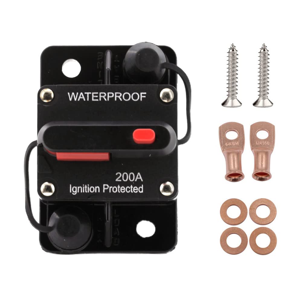 200 Amp Circuit Breaker with Manual Reset for Car Marine Trolling Motors Boat ATV Manual Power Protect for Audio System Fuse, 12V-48VDC, Waterproof (200A)