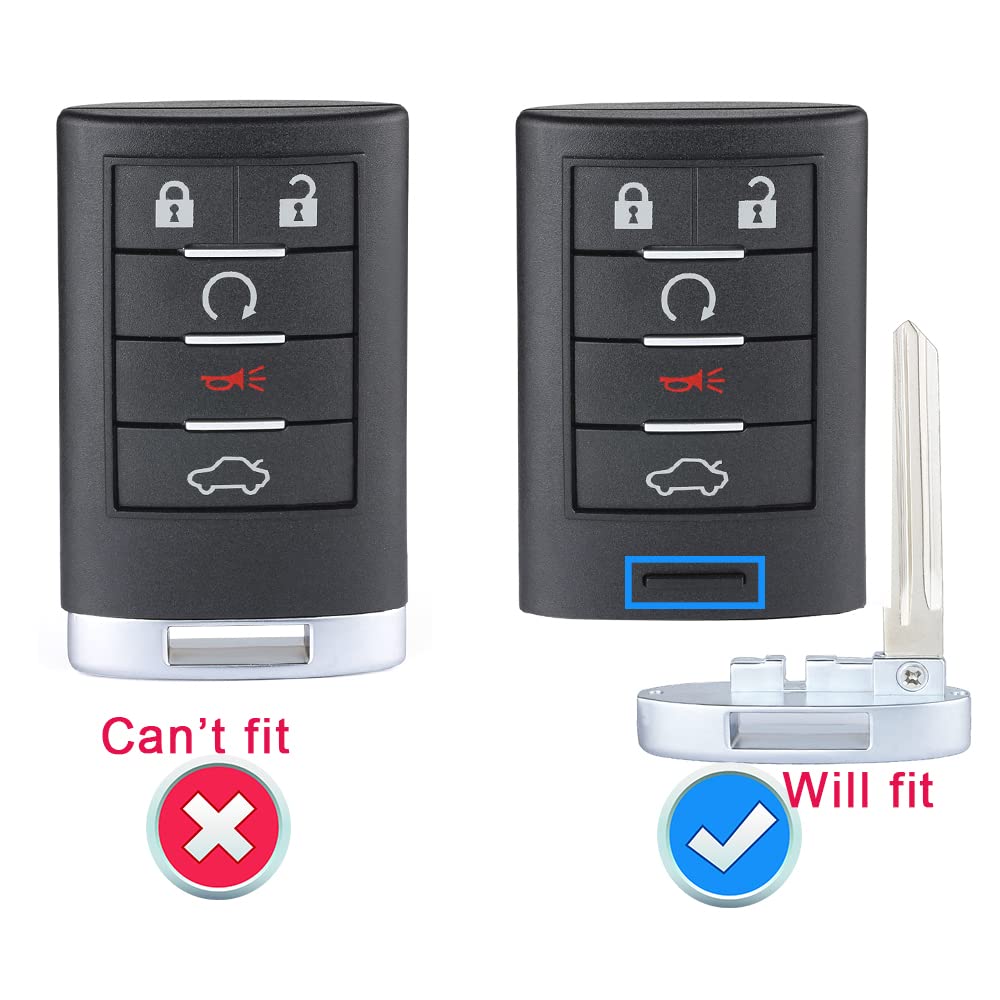 Q: Is this Keyecu replacement smart remote key fob compatible with my Cadillac?A: Yes, this Keyecu replacement smart remote key fob is compatible with Cadillac STS and CTS models from 2008 to 2013. Please ensure that your original key insert blade style matches exactly before purchasing.