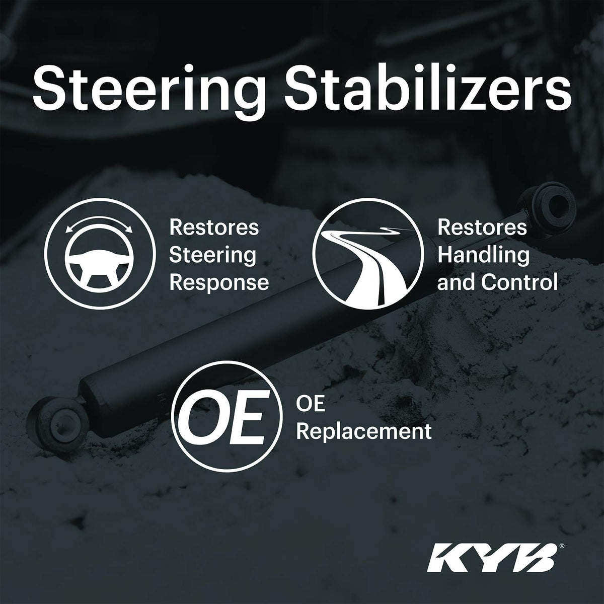 KYB Steering Stabilizers are designed to stop vibrations before they reach the driver. By damping steering shimmy and front-end vibrations, KYB Steering Stabilizers provide more tire control and provide critical performance for 4WD and off-road applications.
