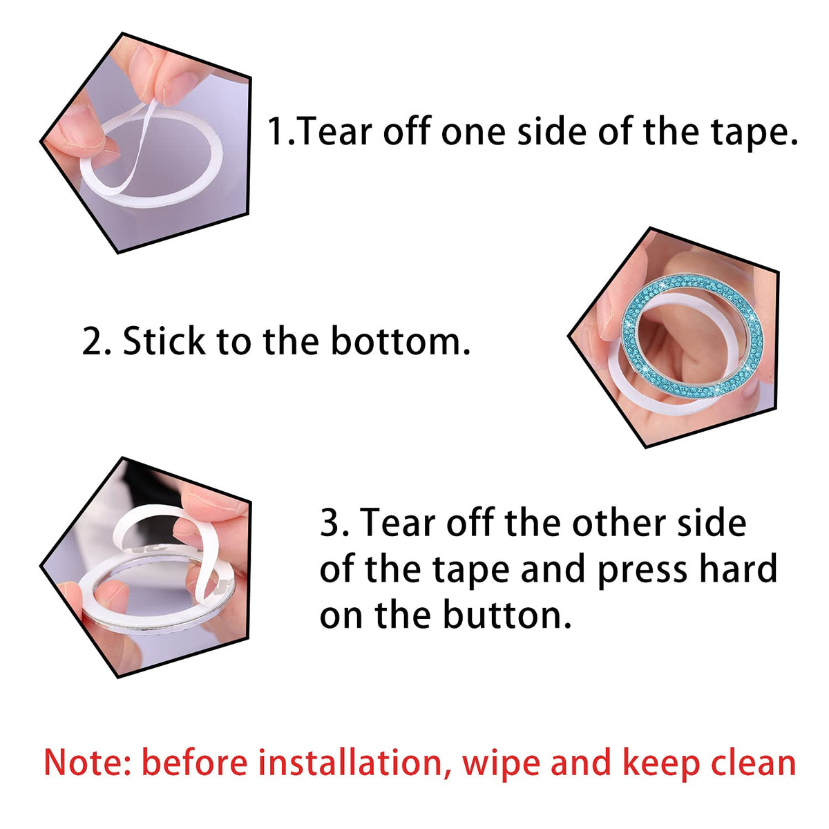 Q: How do I install the rhinestone ring on my car's push button?A: Installation is simple: peel off one side of the tape on the crystal ring and stick it to the halo, then peel off the other side and press it firmly onto the button. For better adhesion, especially in winter, you can heat the adhesive for 5 seconds with a hair dryer before applying.