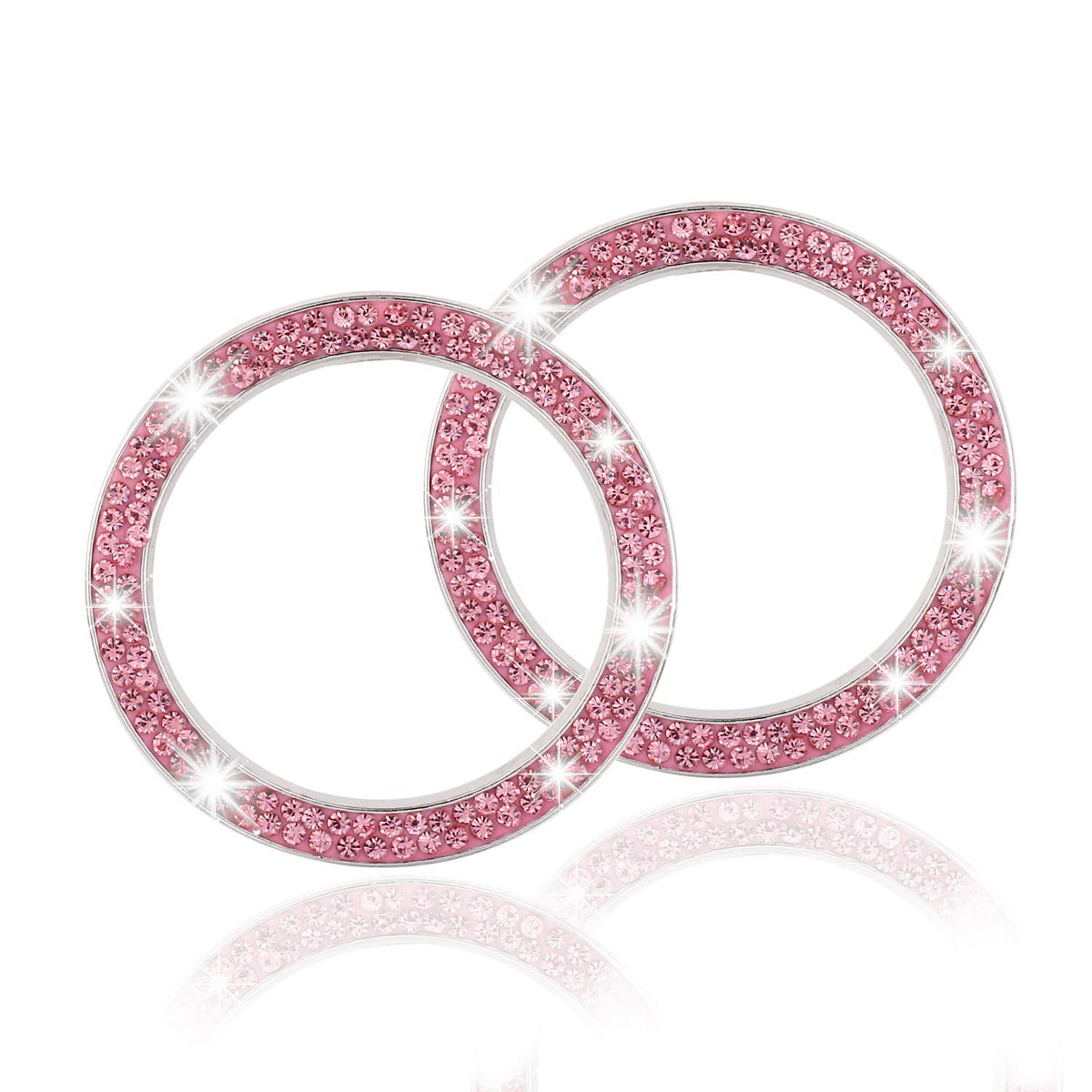 Livtee 2 Pcs Crystal Double Rhinestone Car Engine Start Stop Decoration Ring, Bling Car Interior Accessories For Women, Push To Start Button Cover/Sticker, Key Ignition & Knob Bling Ring, Pink