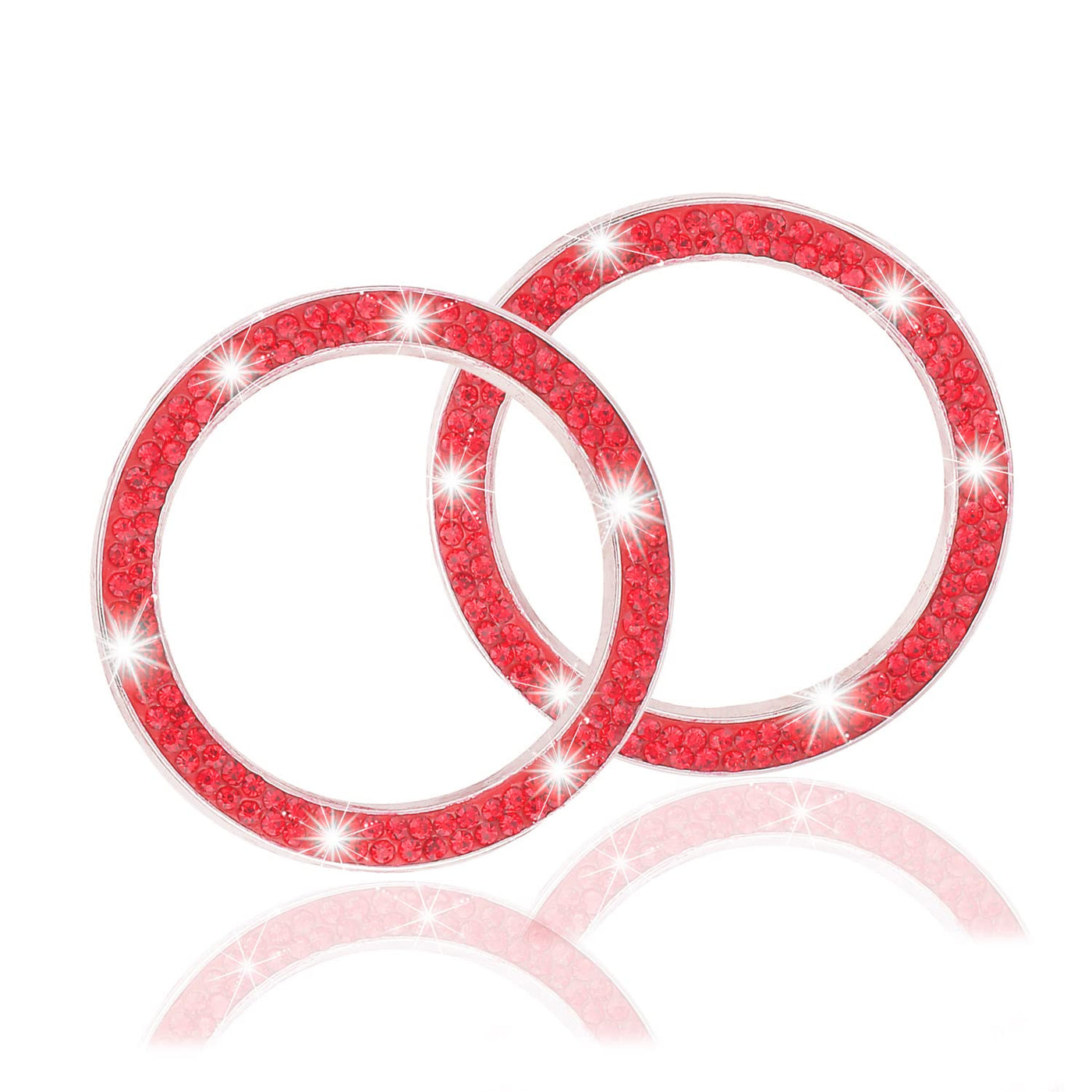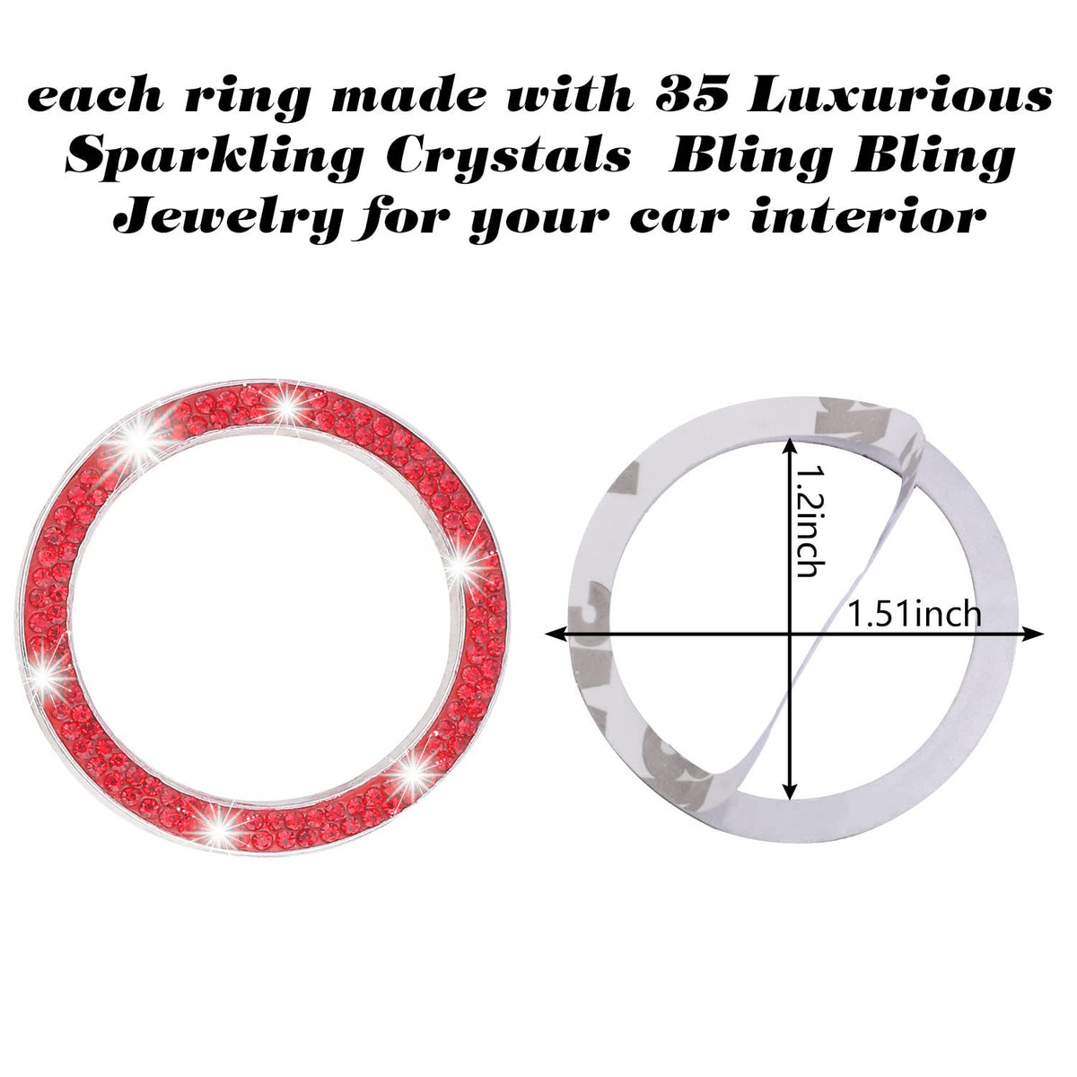 Livtee 2 Pcs Crystal Double Rhinestone Car Engine Start Stop Decoration Ring, Bling Car Interior Accessories For Women, Push To Start Button Cover/Sticker, Key Ignition & Knob Bling Ring, Red