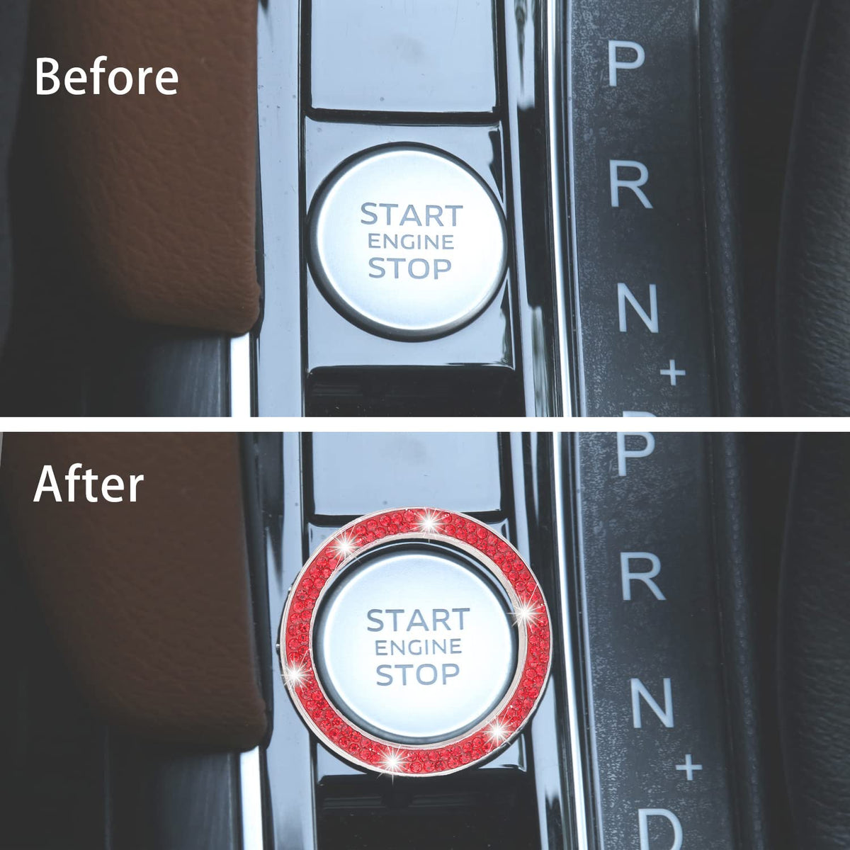 Q: How do I install the rhinestone ring on my car's push start button?A: Installation is simple. Each crystal ring comes with adhesive tape. Just peel one side of the tape, stick it to the halo of the button, then peel the other side and press it tightly onto the button. For better adhesion, warm the adhesive with a hair dryer for about 5 seconds, especially in colder weather.