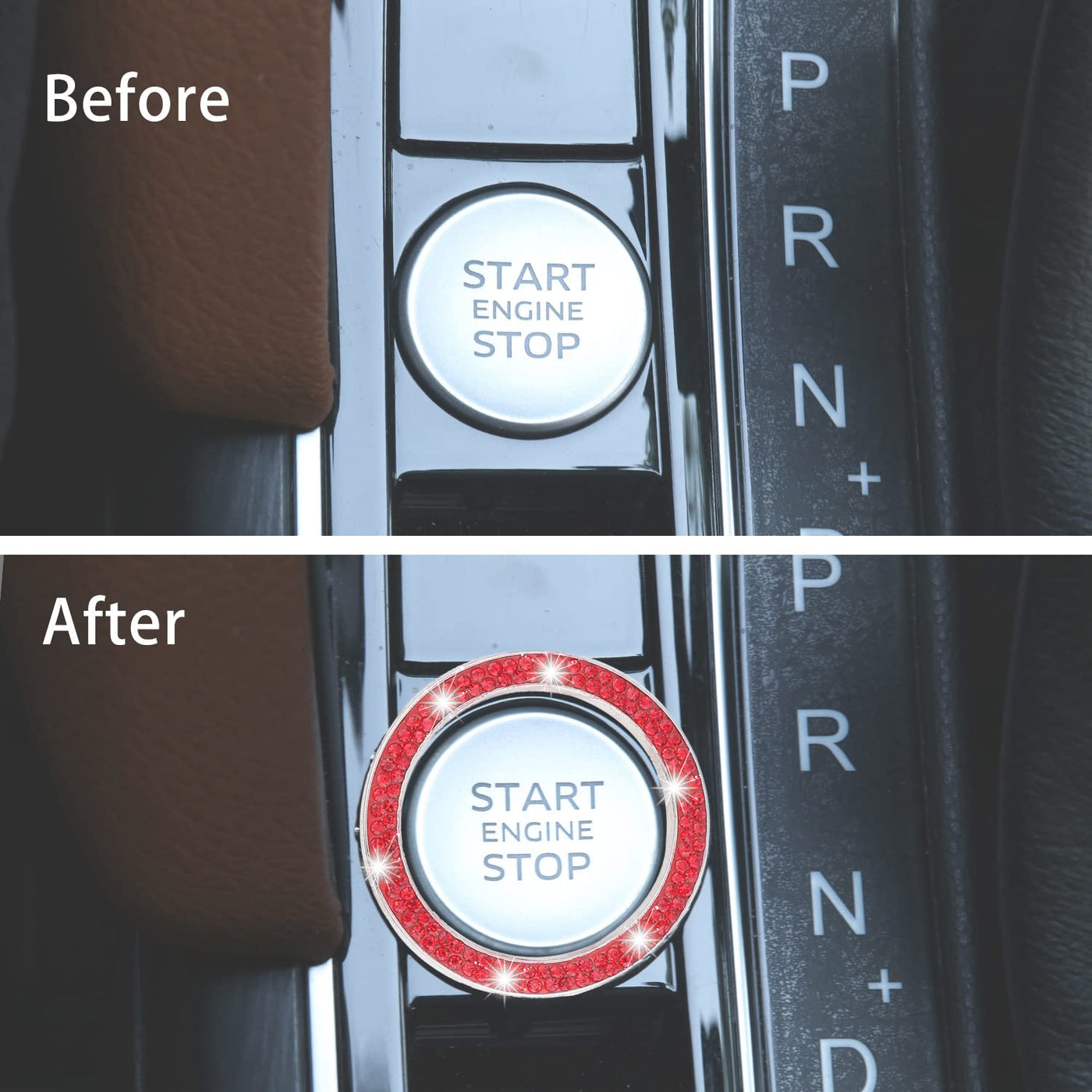 High quality: The exquisite car decoration made of high quality zinc alloy, which is sturdy and durable, and with Double ring crystals on it, making the product dazzling and beautiful for Car Glam Interior Accessory and Unique Women Gift. | Size: Outer diameter of the ring is 1.5 inch; inner diameter of the ring is 1.25 inch; thickness is 0.12 inch. | Easy installation: Each crystal ring has a piece of tape, you just need to peel off one side of the tape and stick its side to the halo, then peel off the other side of the tape and stick it tightly on the button. (In order to make the adhesive stickier, especially in winter, the adhesive will be weak, you can heat the adhesive 5 seconds with a hair dryer before sticking.) | Application: These rhinestone ring decors can be used for car engine start/ stop push buttons, car a/c knobs, radio switches, stick shift etc. | Attention: The car bling sticker may don't fit for 2015/2016/2017 Honda Civic and some models of Mercedes/Nissan/Dodge/Jeep, please double check the diameter of your car Engine Ignition Button.