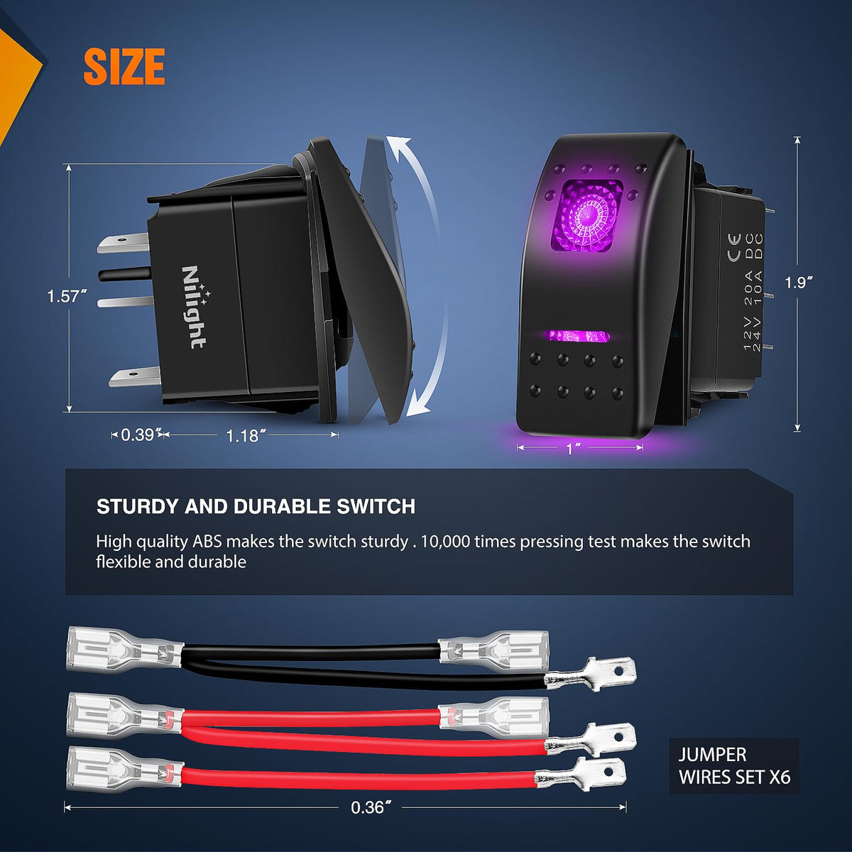 Q: What makes the Nilight rocker switches durable?A: The Nilight rocker switches are made of high-quality plastic and feature well-conductive pins, ensuring long-lasting durability and reliability for general use in various applications.