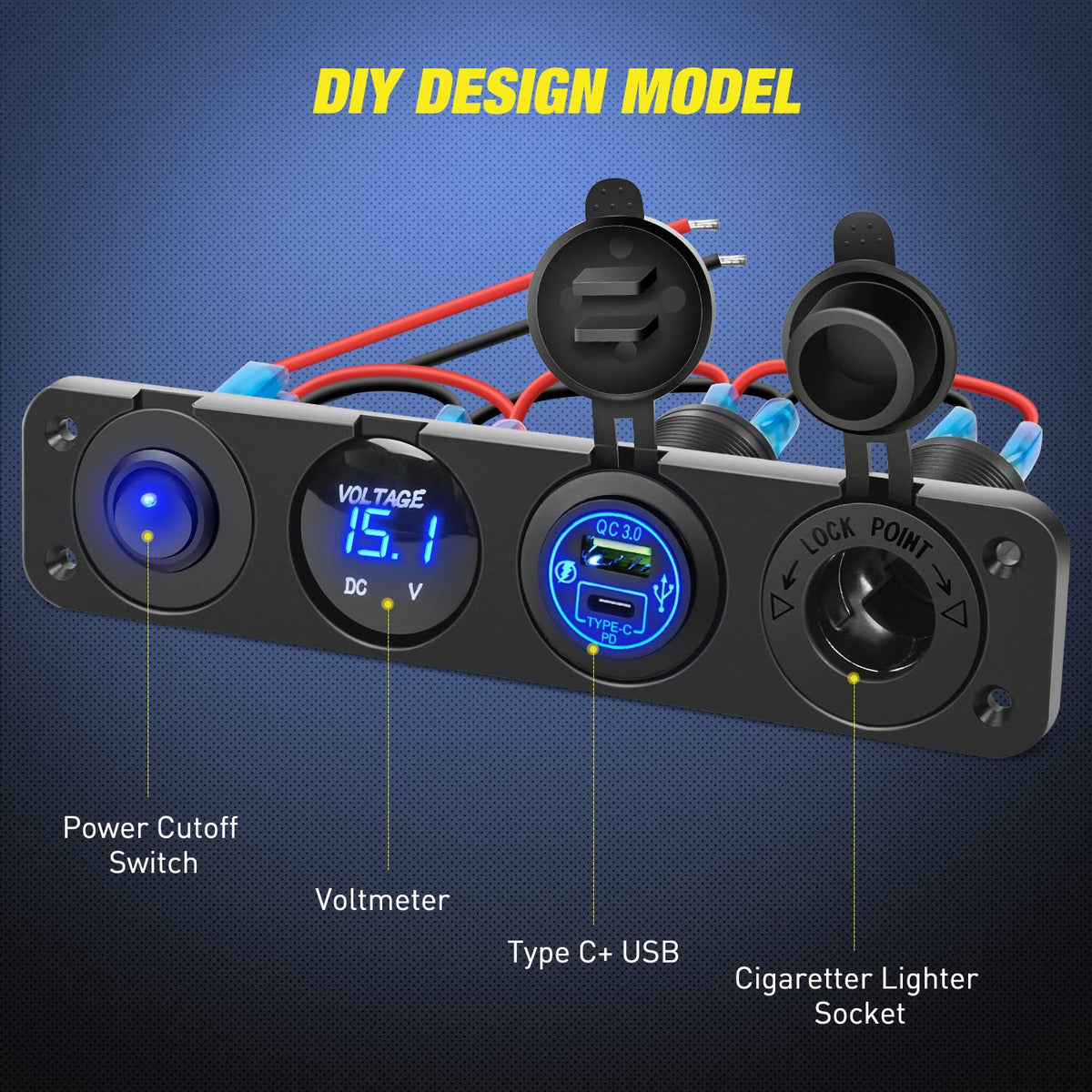 Nilight 4 In 1 Charger Panel Socketworking Voltage: Dc 12V - 24Vpower Outlet: Dc 12Vvoltmeter Display Range: Dc 6 - 28Vtoggle Switch: Dc 12V, 20Afitment: Fits For 12-24V Cars, Trucks, Marine Boats, Atv, Rv Etc.This Pd Type C And Qc 3.0 Usb Socket And Cigarette Lighter Power Socket Is Designed For Dc 12V Use And Should Not Be Plugged Into An Outlet In Your Home.Also, This Cigarette Lighter Power Socket Outlet Is Not To Be Used For Actual Hot Lighters.The Tight Cap Of The Cigarette Lighter Socket Protects The Ports When Not In Use. Waterproof Or Dustproof For Interior Or Exterior Application.