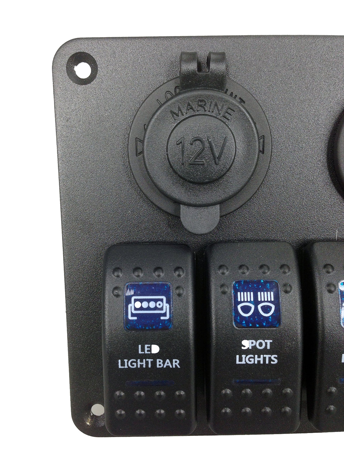 Q: Is the switch panel water-resistant?A: Yes, the Pactrade switch panel is designed with a water-resistant enclosed rocker switch system and includes a rubber cover to protect the device from moisture. This feature enhances durability and ensures reliable operation in various weather conditions.