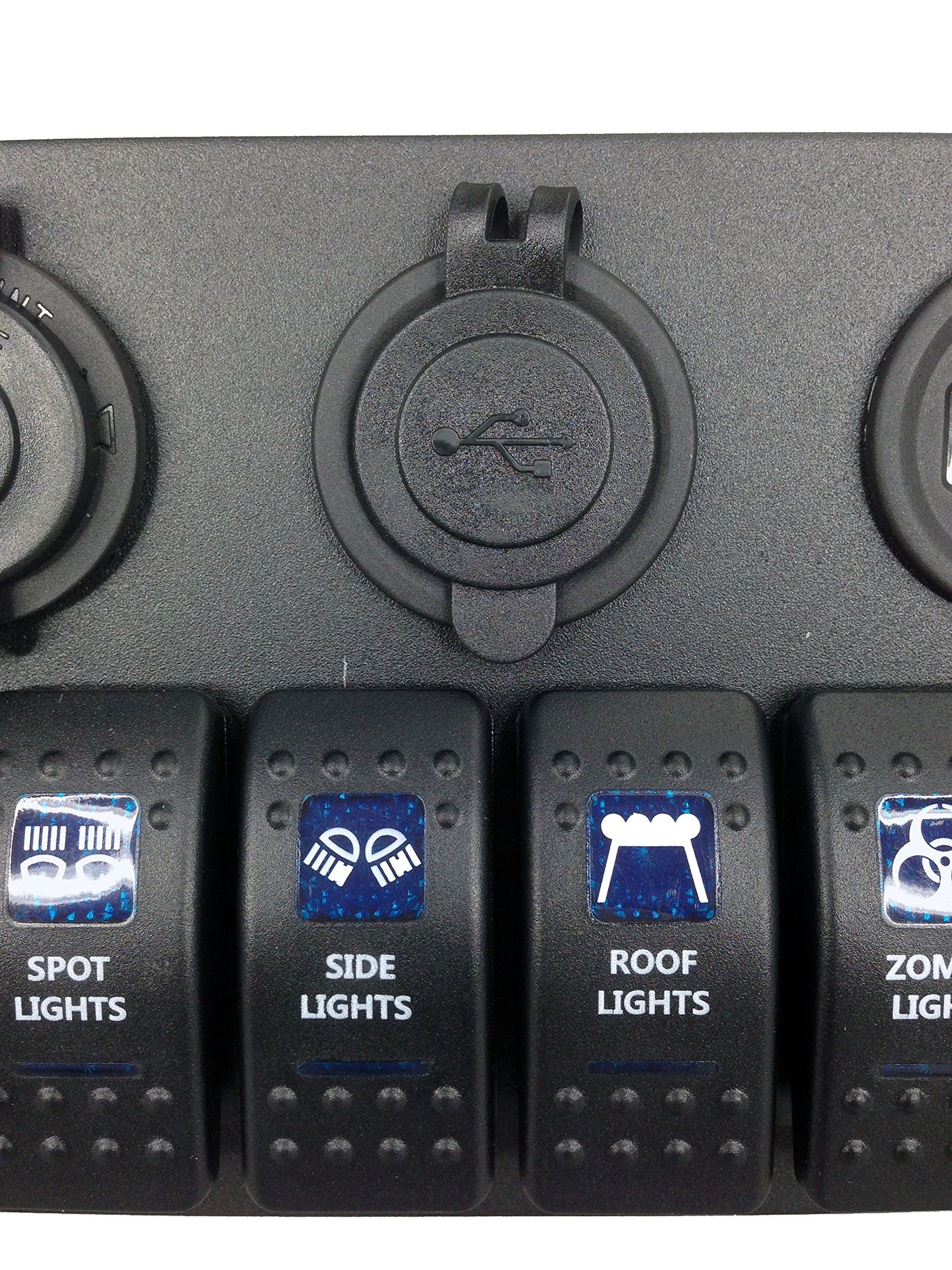 This Is A 6 Gang Car/Rv/Truck Switch Panel With Usb And 12V Power Socket And Voltmeter. Each Switch Comes With Blue Led Indicator. It Is Designed For Automotive/Rv/Car/Truck. Installed Switch Is On-Off (Non-Momentary). Heavy Aluminum Metal Material. Led Light Indicator Built In. Product Details: Rocker Switch X 6, 12V Power Socket X 1, Usb Charger X 1, Voltmeter X 1. Sleek & Contemporary Design. Rubber Cover Provides Device Protection From Moisture. Rubber Seal-Cap To Keep It Water-Tight. Includes 4 Stainless Steel Screws. Switches Available: 6 Gang ( Led Light Bar, Spot Lights, Side Lights, Roof Lights, Zombie Lights, Driving Lights ). Amp Rating Per Circuit: 15 Amp Max. Dual Usb Design For Convenient Charging Use. Loop Circuit: On-Off. Switch System: Water-Resistant Enclosed Rocker Switch. Operating Temperature:-25Degree To 80Degree . Usb Socket Input: 12V. Usb Socket Output'' 5 1A/ 5V 2.1A.. Dimension: 7'' X 4 1/4''. Item# Pn-L6S3.