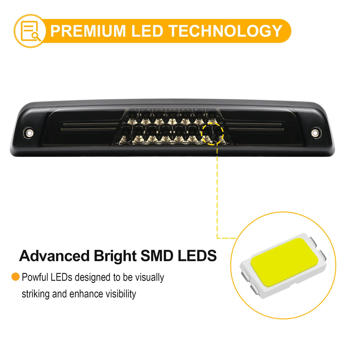 R&F Auto Led Smoked 3Rd Brake Light Replacement For Ram 1500/2500 / 3500 (1994-2001) Pickup Truck Roof Cargo Lights High Mount S