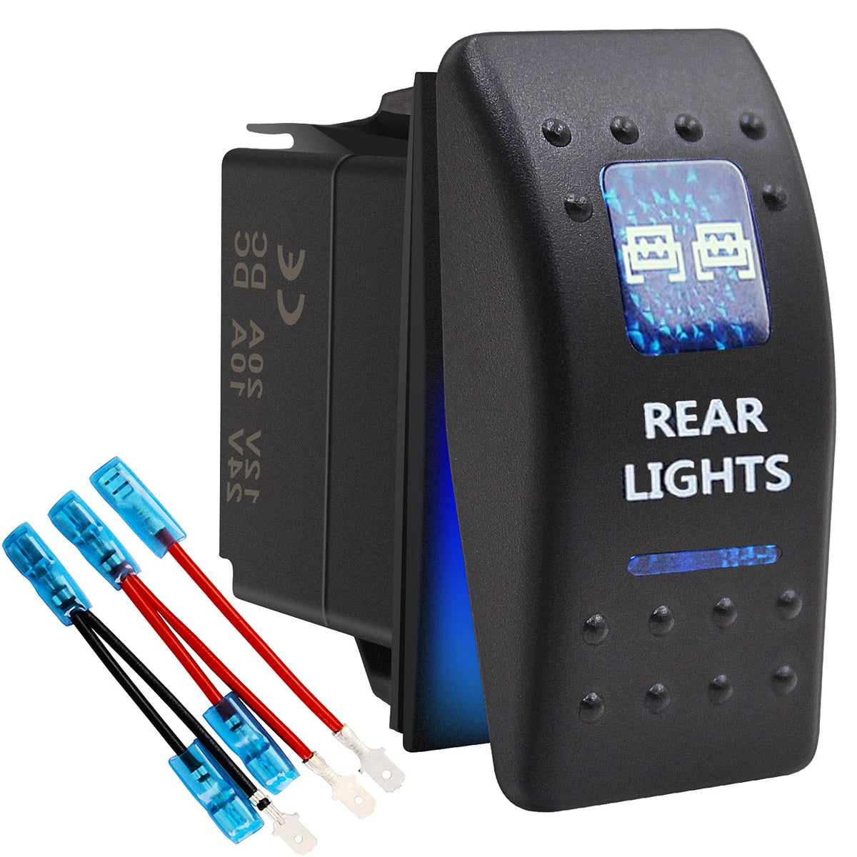 Rear Lights Waterproof Rocker Switch Toggle - On/Off Blue Led Light - 12V 20Amp 24V 10Amp, 5 Pin For Automotive Cars Vehicles Marine Boats Trucks Trailers 4X4 Caravans Rvs Suv Atv Utv & More
