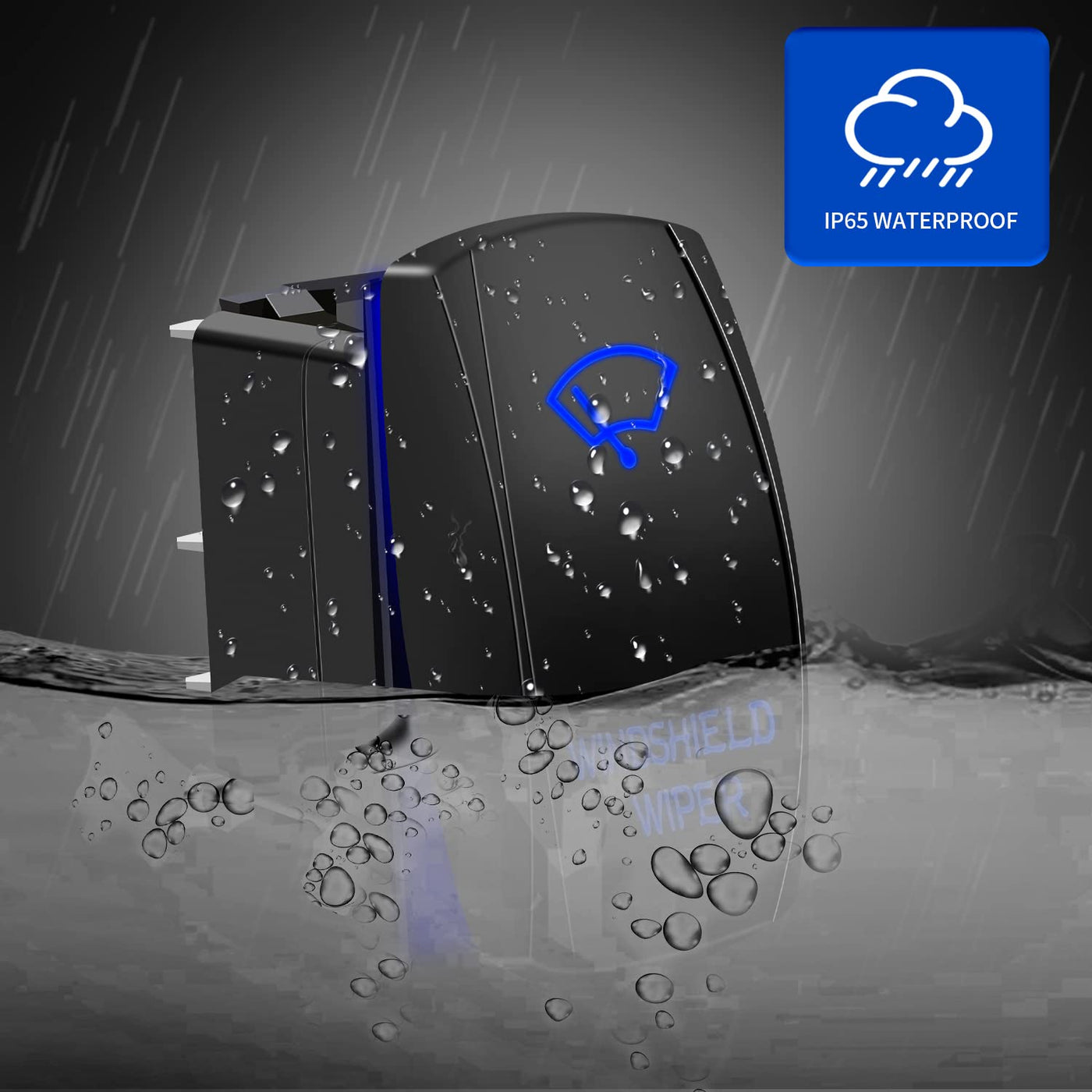 Specification:5 pin on-off rocker switch with 14 AWG jumper wires.Material: ABS+PCWaterproof: IP66Rated at 12V 20A and 24V 10A DC.SPST design (Single Pole Single Throw).Built-in 2 LEDs, laser-etched pattern, Blue LED Backlit.Product Size: 1.9''(48.3mm) x 1.04''(26.3mm).Mounting Hole Size: 1.43''(37mm) x 0.84''(21.3mm).Mainly used for controlling LED light bar, LED work lights, fog lamps, driving lights, headlights, taillights, off road lights, boat light, etc.Package Include:1x 5 pin rocker switch1x jumper wires set