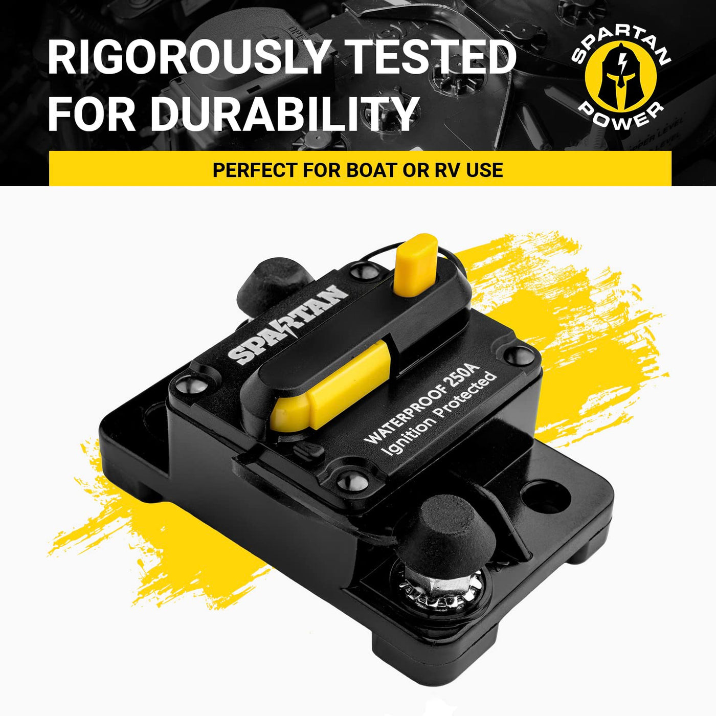 Q: Can the Spartan Power Circuit Breaker be used as a battery disconnect switch?A: Yes, this circuit breaker functions as a battery disconnect switch, allowing users to easily disconnect power from a battery to prevent short circuits and battery drain.