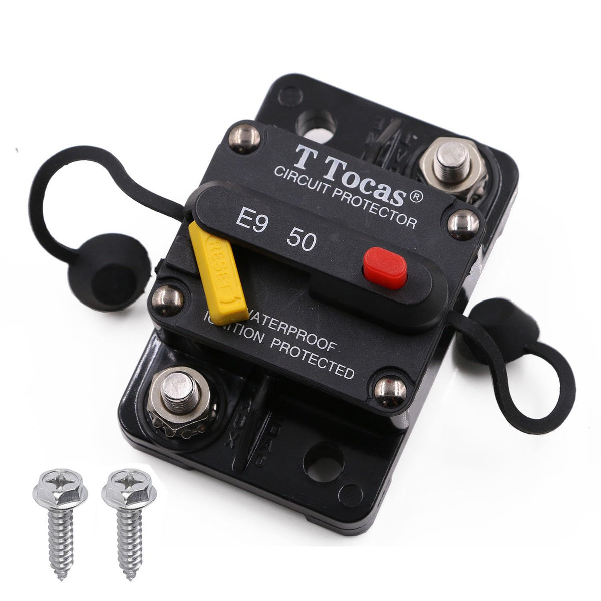 T Tocas 50 Amp T3 Circuit Breaker 12V - 48V Dc With Led Indication Waterproof Switchable