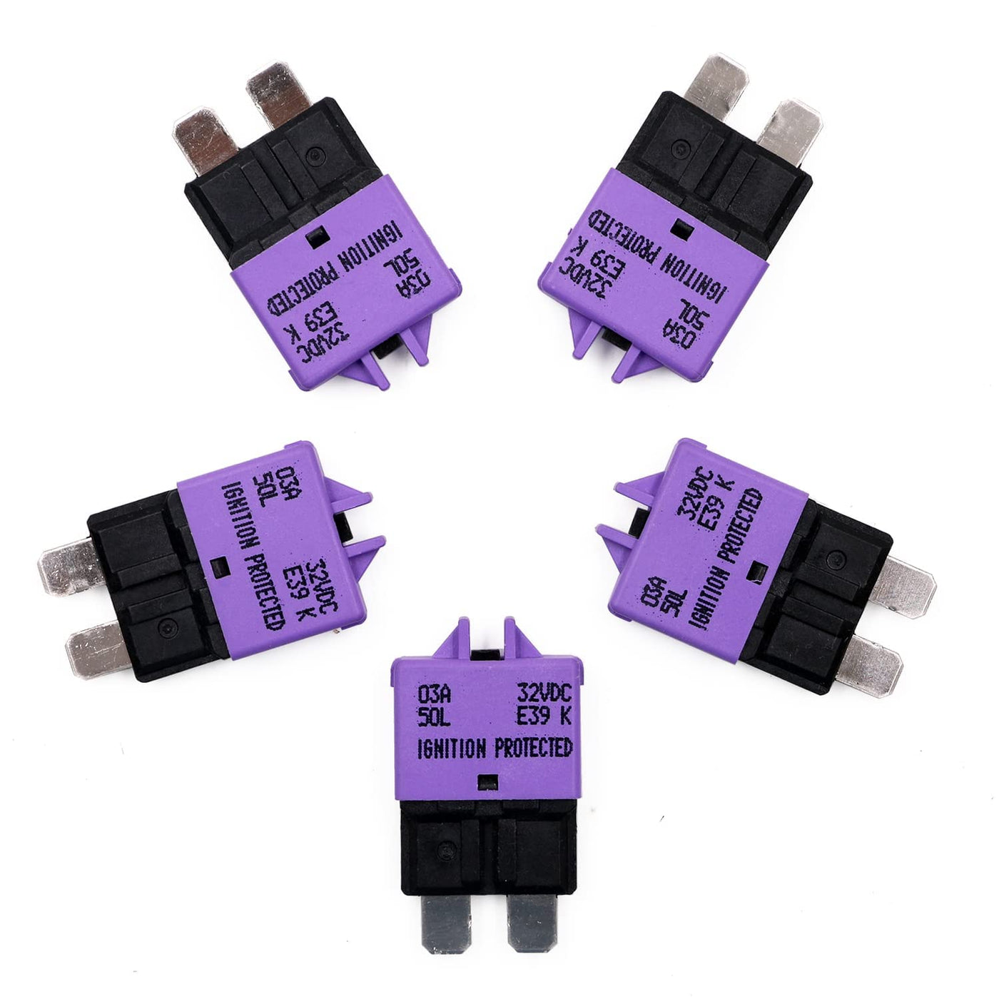 T Tocas 5Pcs Manual Reset Low Profile Circuit Breakers Atc/Ato Mini Fuse Circuit Breakers12V - 32Vdc (3A)