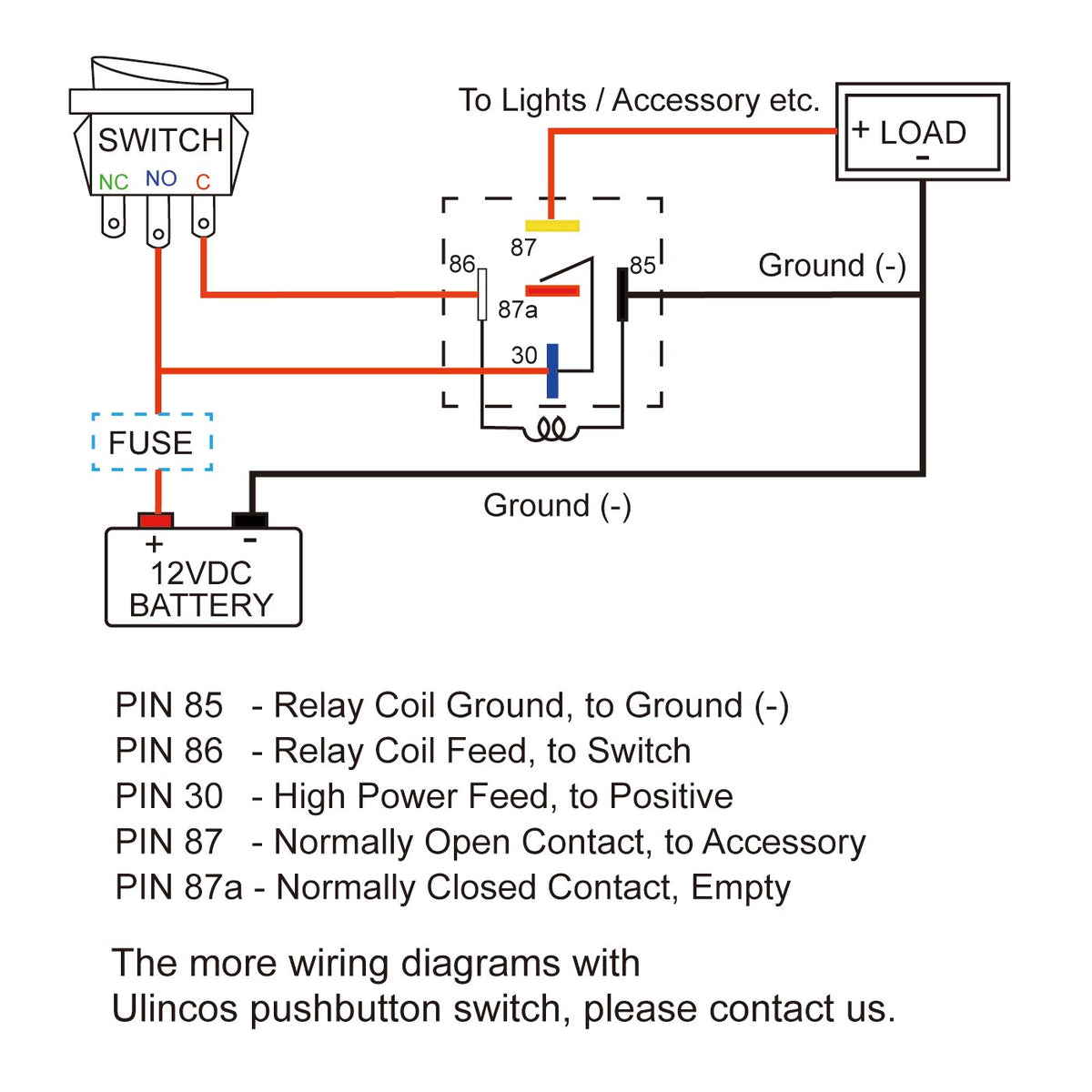 Ulincos Auto Relay U1914 With 14Awg Wire Harness, 12V Dc 30/40A Spdt 5-Pin (Pack Of 2)