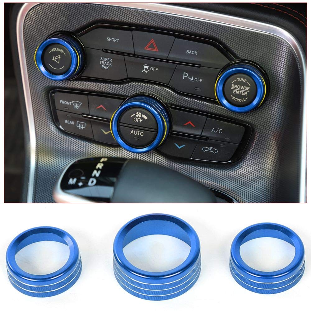 Description : Model: for Dodge Challenger 2015-2019 for Dodge Charger 2015-2019, for 2016-2019 Dodge Durango for 2015- 2020 Chrysler 300, Chrysler 300s for Dodge Ram 1500 2500 3500 2013-2018 Feature: Provides a high class and fashion decor style for your Challenger, change the ordinary interior design of the car and add unique colors to your car, making it high class, unique and different from any other It can cover existing scratches and prevent your car from fingernails, key scratches, etc. Material: Made of durable premium anodized aluminum Installation: Can be installed directly, no drilling or cutting required, just press the button trim into the air conditioning button. Don't need any other tool, no damage to your car Package Include: 3 pcs Voodonala Blue Air Conditioner Switch & CD Button Knob Trim for Dodge