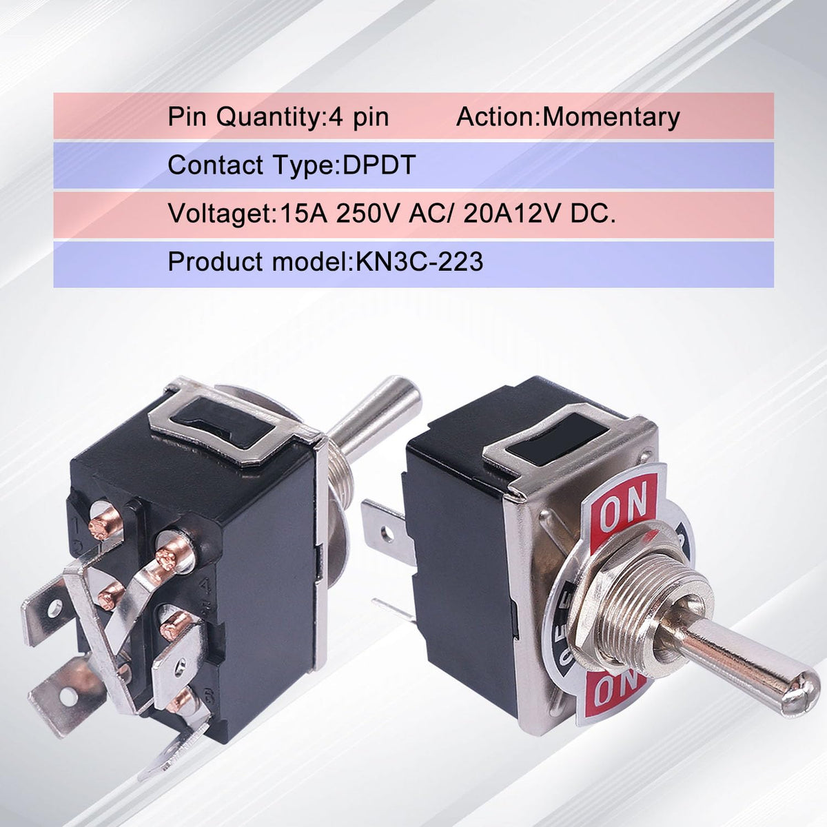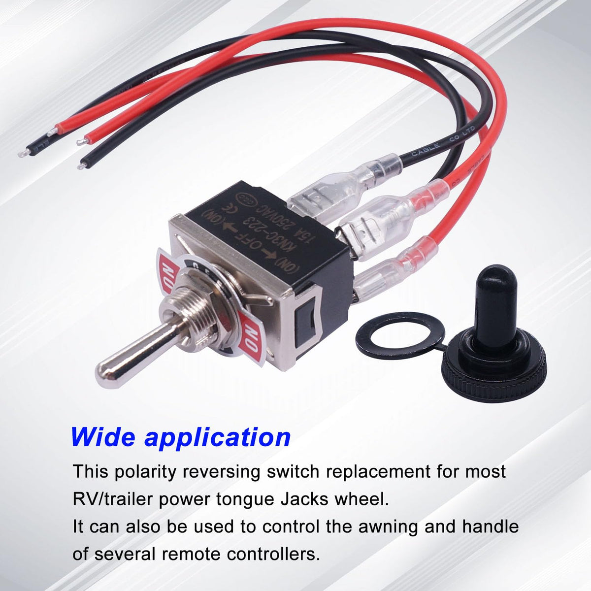 Weideer Momentary Reverse Polarity Switch 12V 30A Motor Control Rv Jack Switch Dpdt 4 Pin (On)-Off-(On) Toggle Switch With Waterproof Cap Wires