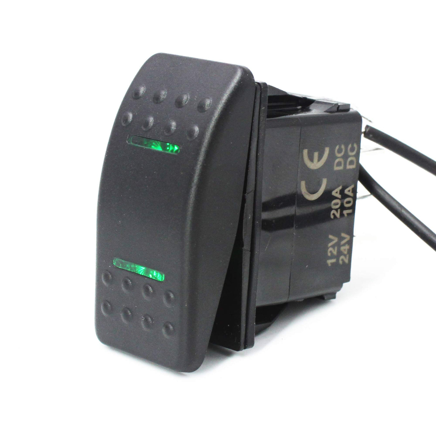 X-Haibei Marine Rocker Switch Waterproof 12V/24V On-Off-On 4 Pin Green Led Lighted For Boat Car Truck Trailer Caravan Rv Suv Atv