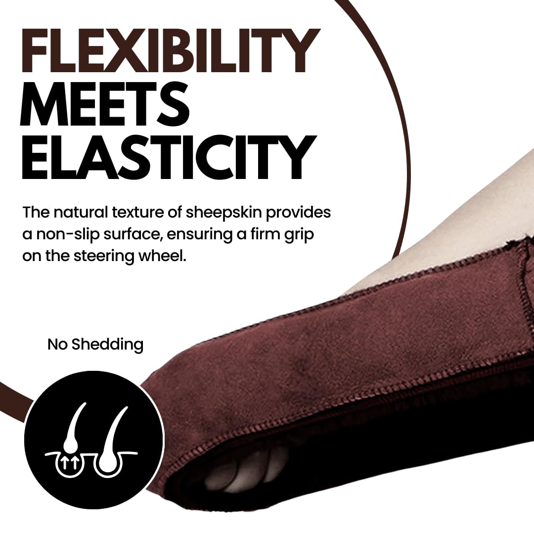 Andalus Australian Sheepskin Wool Steering Wheel Cover For Women & Men - Universal 15 Inch Steering Wheels & Accessories - Eco-F
