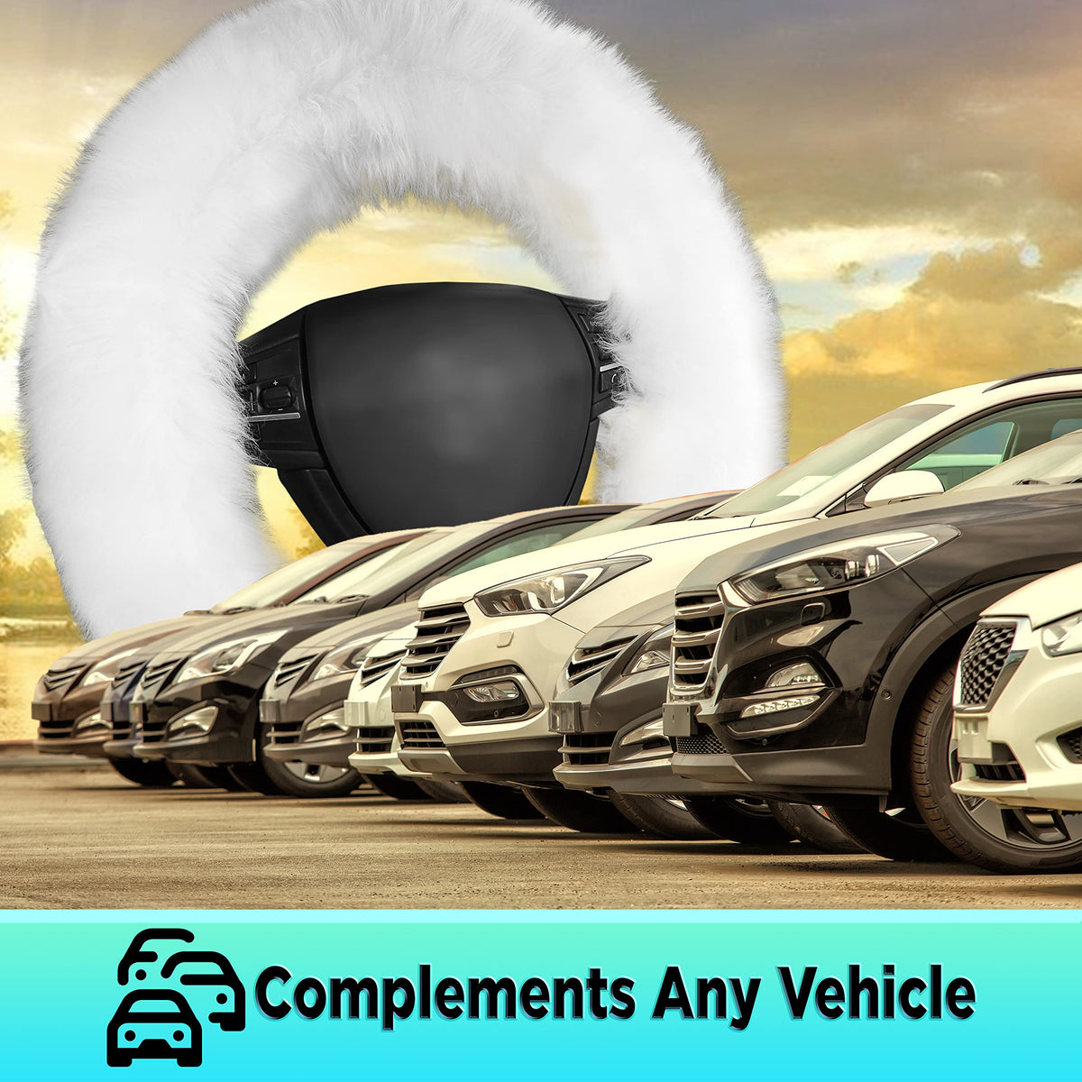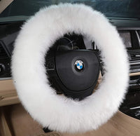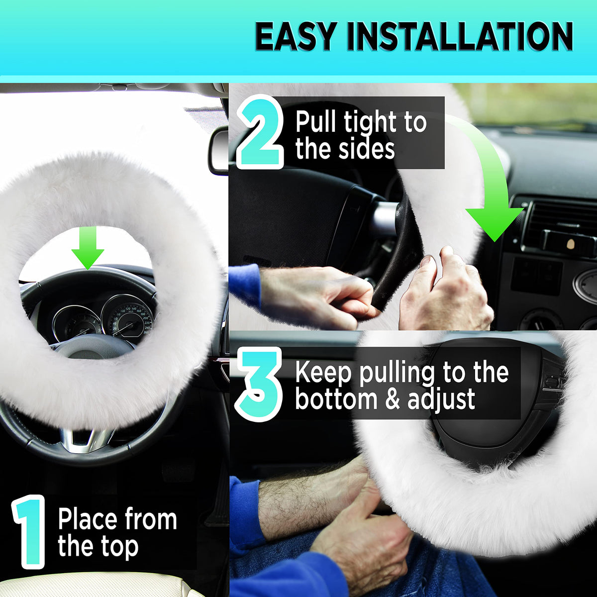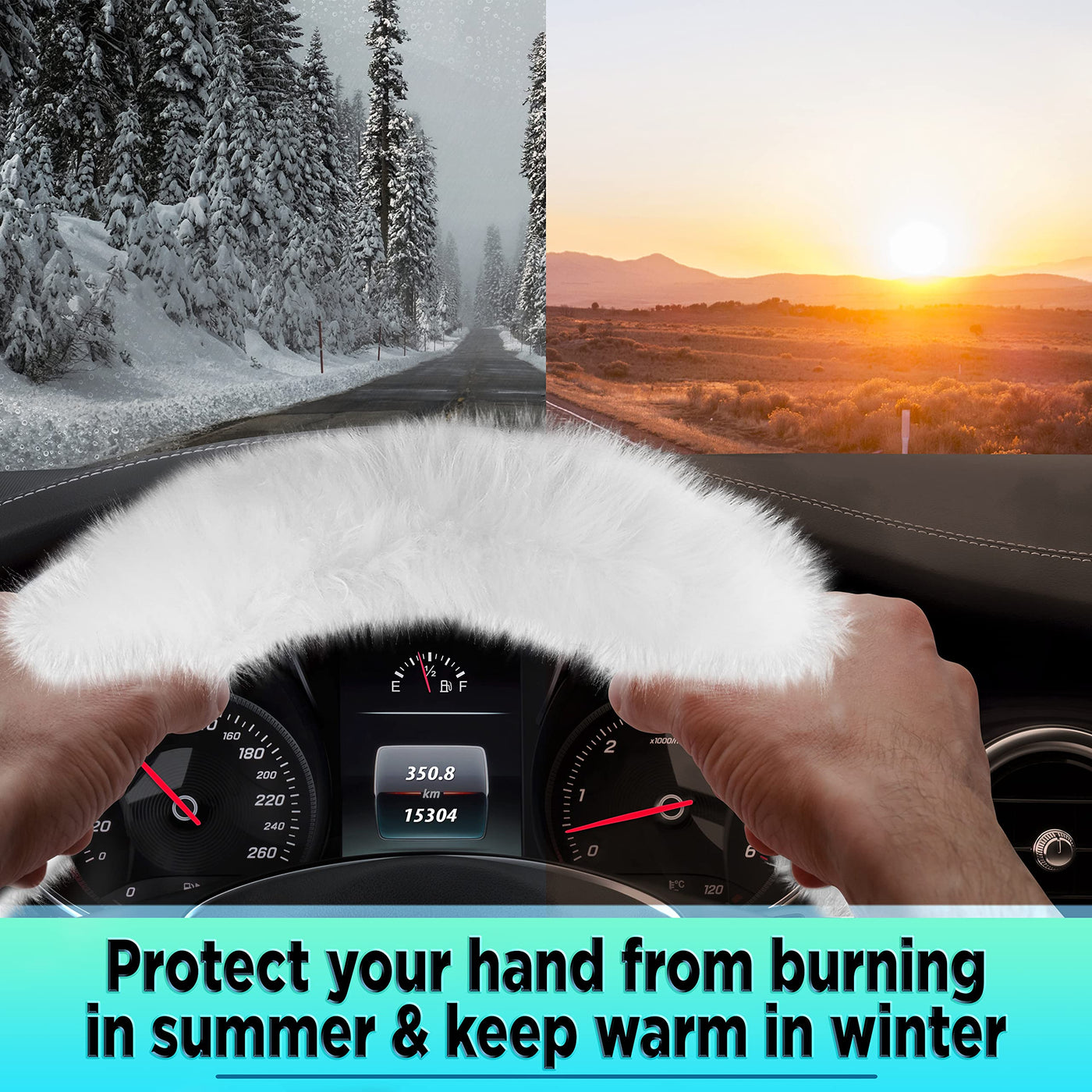 Andalus Luxurious Australian Sheepskin Long Wool Fuzzy Steering Wheel Cover, Anti-Slip 15 Inch Fluffy Steering Wheel Cover Offers a Plush Feel, Eco-Friendly Sheepskin Steering Wheel Cover (White)