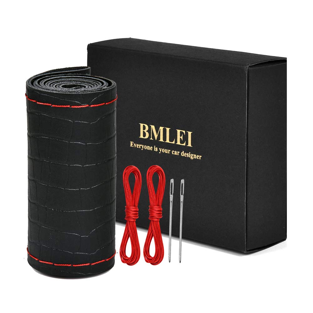BMLEI Steering Wheel Cover Universal 15 Inch with Top Genuine Leather, Anti-Slip Design, Soft Padding, Stitch on Wrap