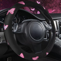 Car Pass Pink Embroidery Butterfly Steering Wheel Cover, Universal 15 Inch Car Wheel Cover for Women Girls, Fit for Suvs,Small Trucks,Sedans,Cars (Black and Pink)