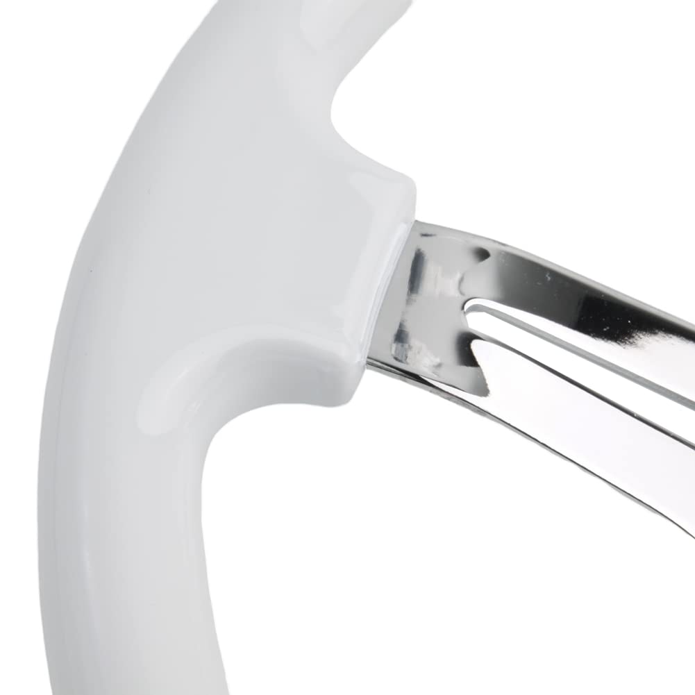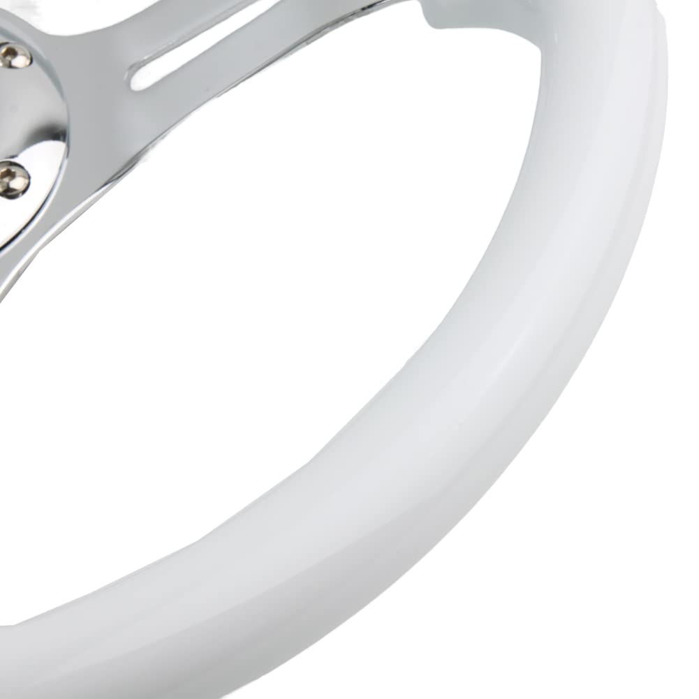 Classic White Car Racing Steering Wheel Chrome Silver Spokes 350mm 14'' Sports Wood Steering Wheel 6-Holes Deep Dish With Horn B