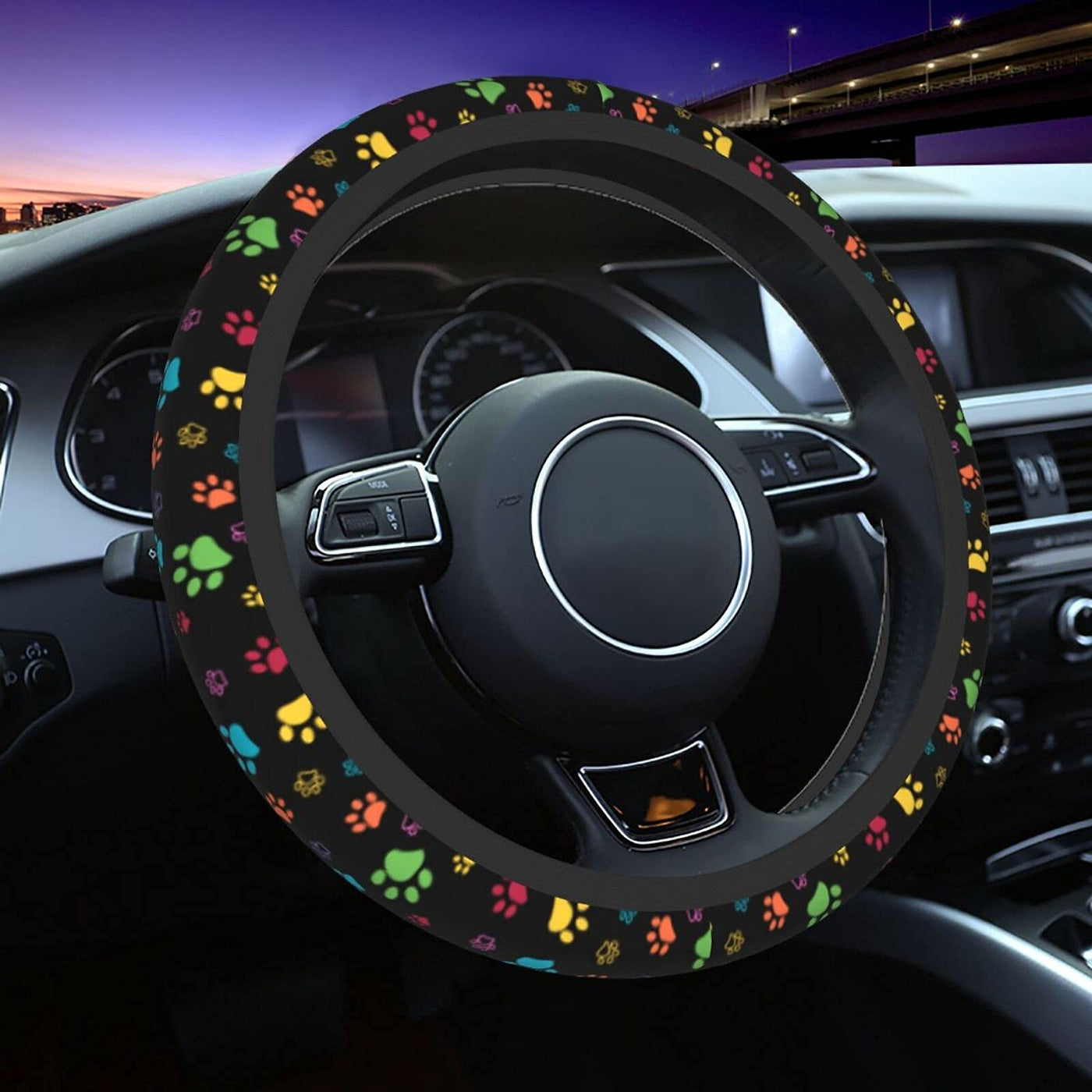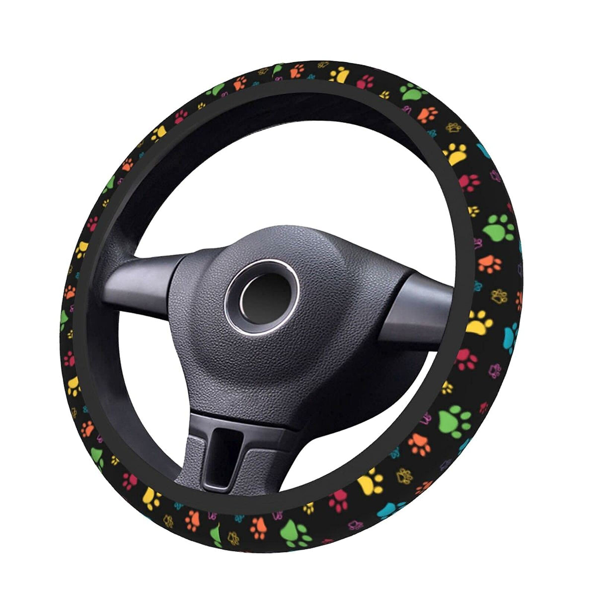 Dog Paw Print Steering Wheel Covers Universal 15 Inch Non Slip Neoprene Steering Wheel Protector Cover For Men Women Teen