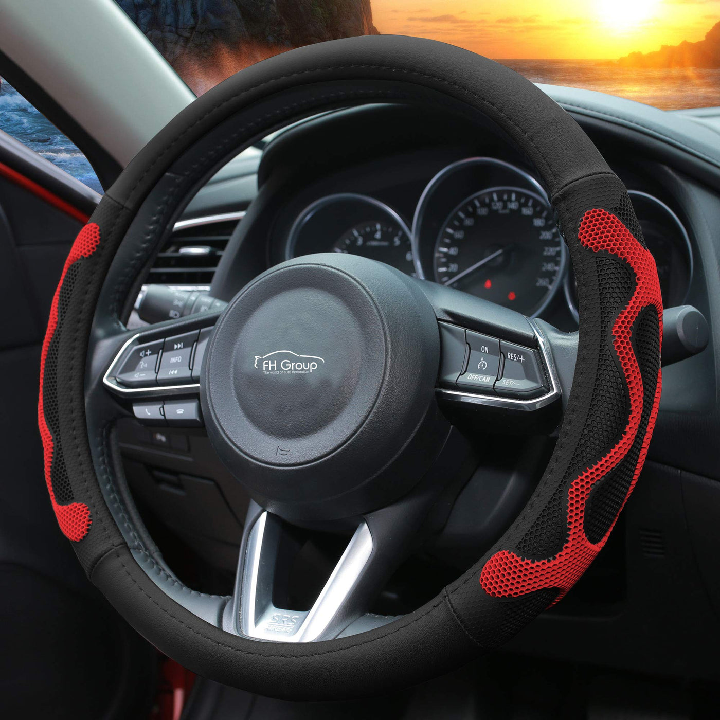 Q: What vehicles is the FH Group FH2010RED steering wheel cover compatible with?A: The FH Group FH2010RED steering wheel cover is designed to fit most cars, SUVs, and trucks with a steering wheel diameter of 14” to 15”. This universal fit makes it a versatile choice for various vehicle types.