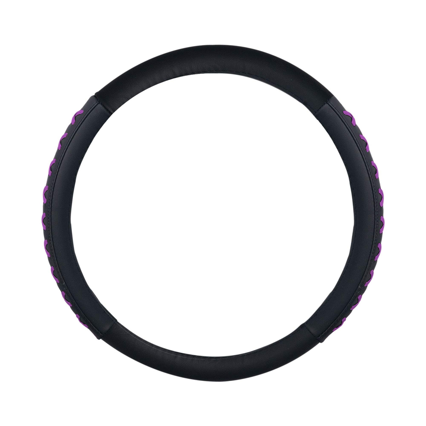 Fh Group Fh2022Purple Universal Fit 15 Inch Genuine Leather With Lace-Up Detailing Purple Steering Wheel Cover Fits Most Cars, S