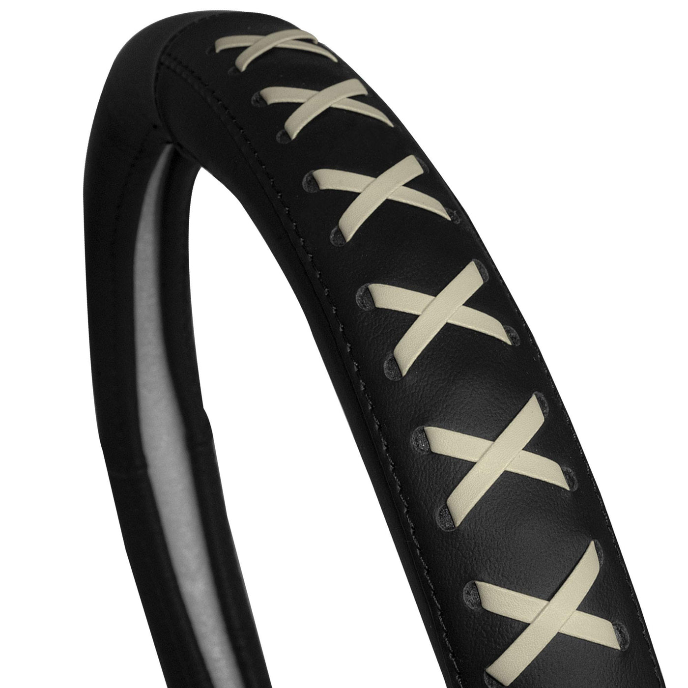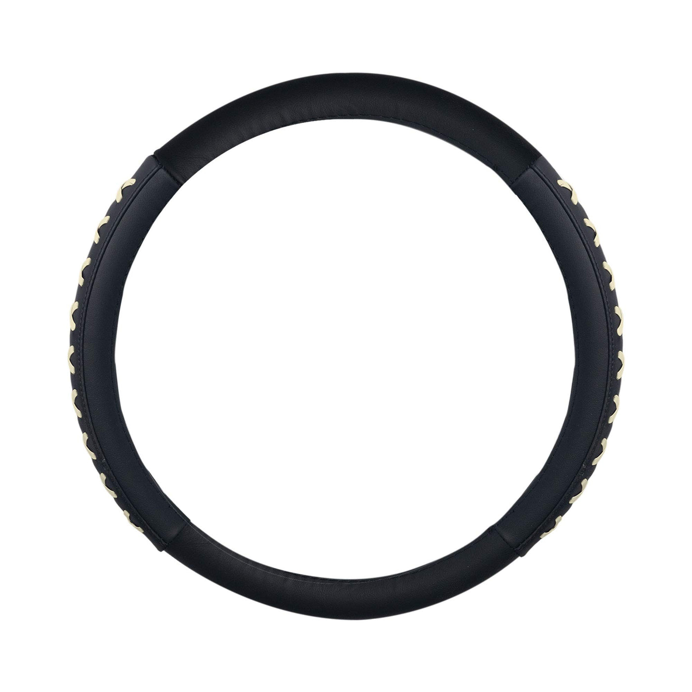 Fh Group Universal Fit 15 Inch Genuine Leather With Lace-Up Detailing Steering Wheel Cover Fits Most Cars, Suvs Beige