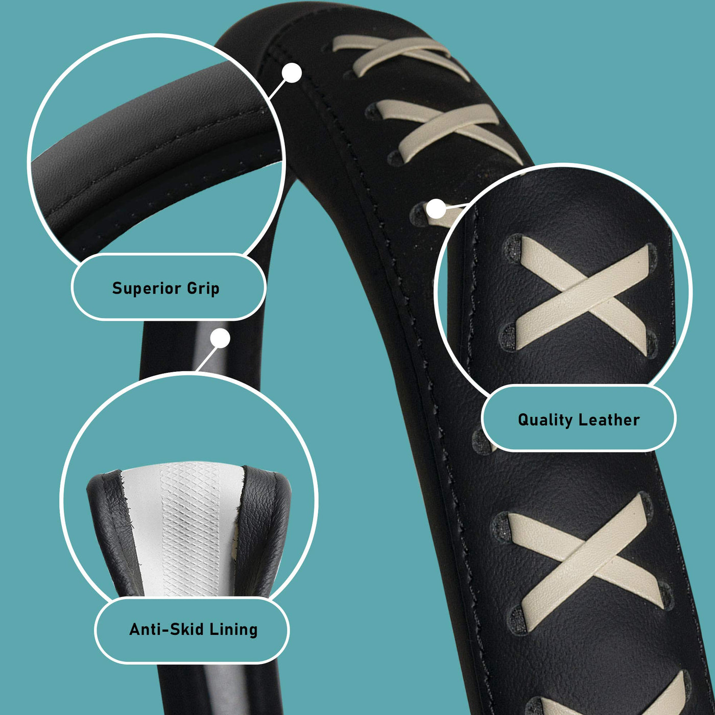 Upgrade Your Steering Wheel And Save It From Uv Damage With Protection That Looks As Good As It Feels. Weve Laced These Genuine Leather Covers With Juicy Color, Pairing Bold Style With Luxe Comfort. The Covers Universal Frame Features A Solid Build And Smooth Hand That Delivers A Factory-Fresh Finish.