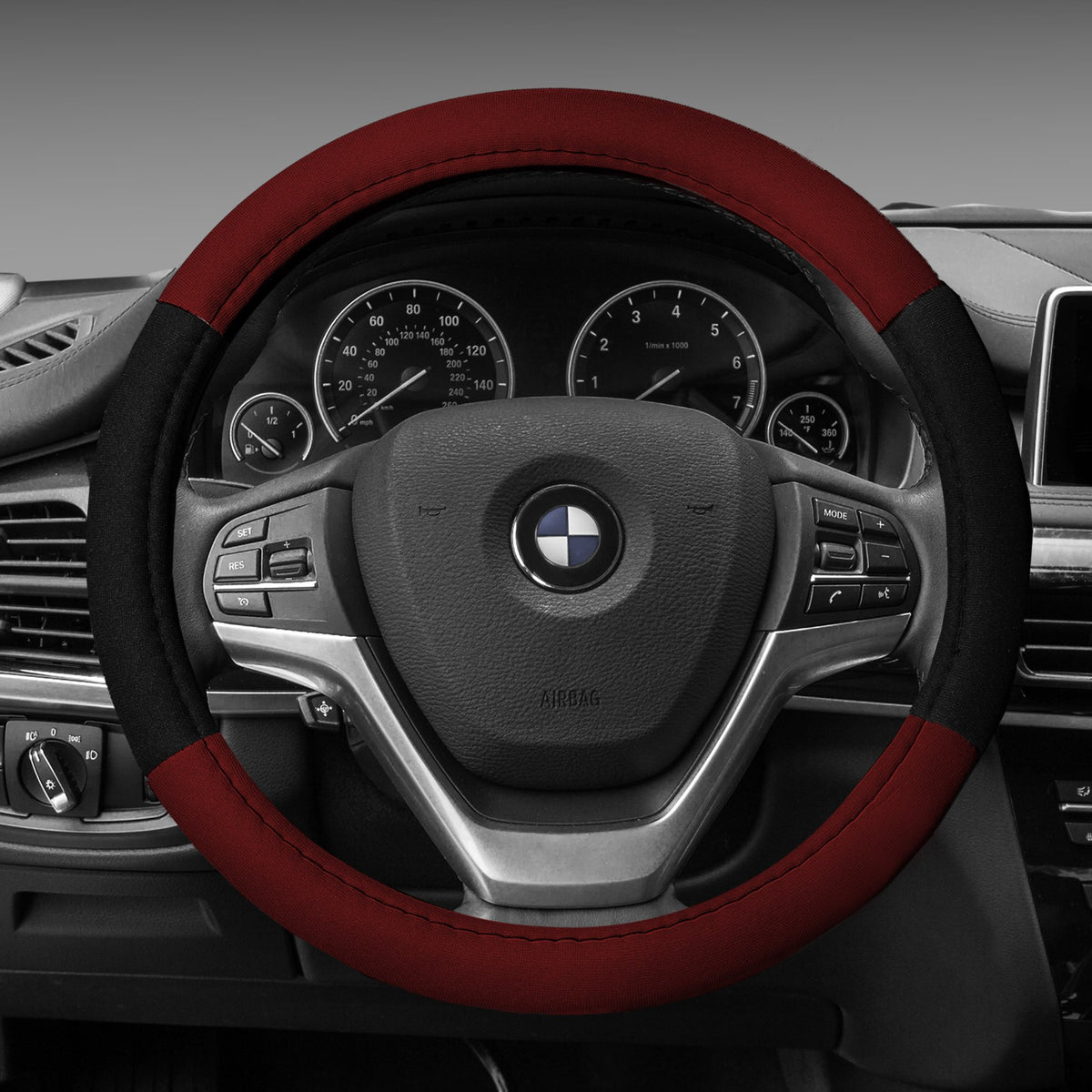 Fh Group Universal Fit Modernistic And Seat Belt Pads Combo Set Red Steering Wheel Cover Fits Most Cars, Suvs
